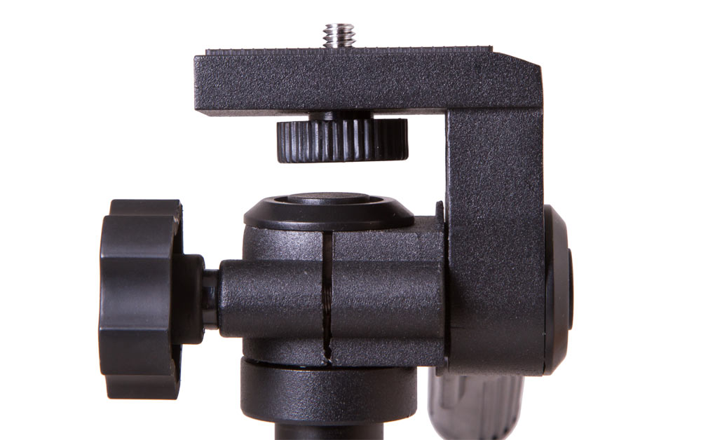 Установочная площадка поворачивается по вертикали и горизонтали удобной ручкой. Длина штатива в сложенном состоянии – 32 см.