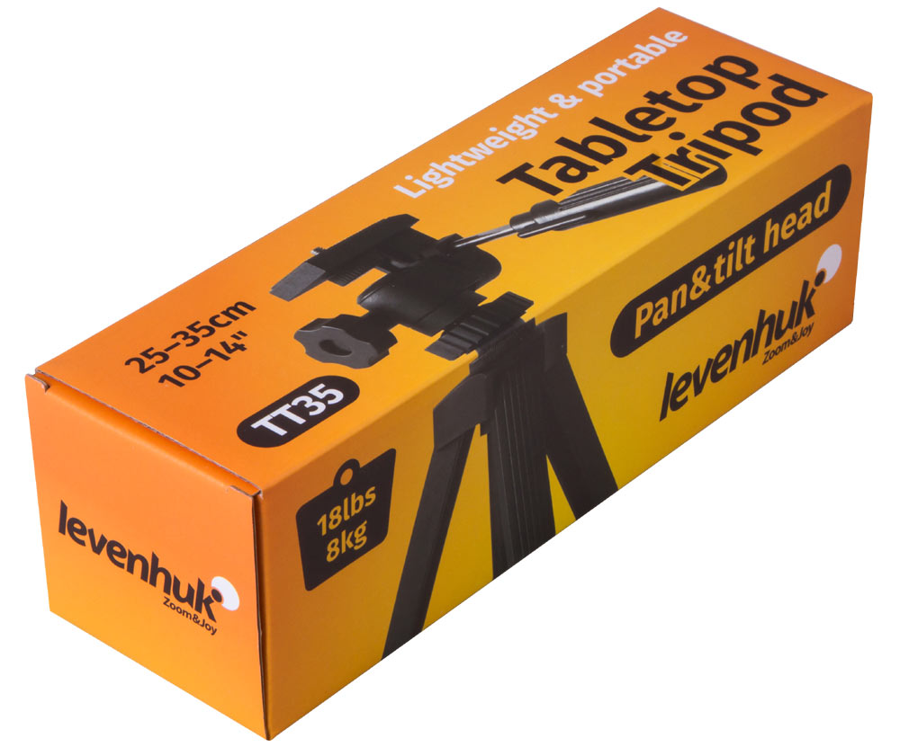Компактный и прочный настольный штатив Levenhuk TT35 способен нести на себе оптический прибор весом до 8 кг. Он подойдет для установки любой оптической техники со стандартным креплением 1/4": биноклей, дальномеров, тепловизоров, зрительных труб, фотоаппаратов.