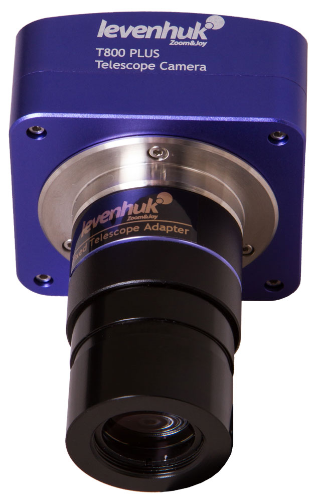 Цифровая камера Levenhuk T800 PLUS устанавливается прямо в фокусер телескопа. Она совместима с телескопами любых брендов и оптических схем. В комплекте есть адаптер-переходник для фокусеров 1,25''.