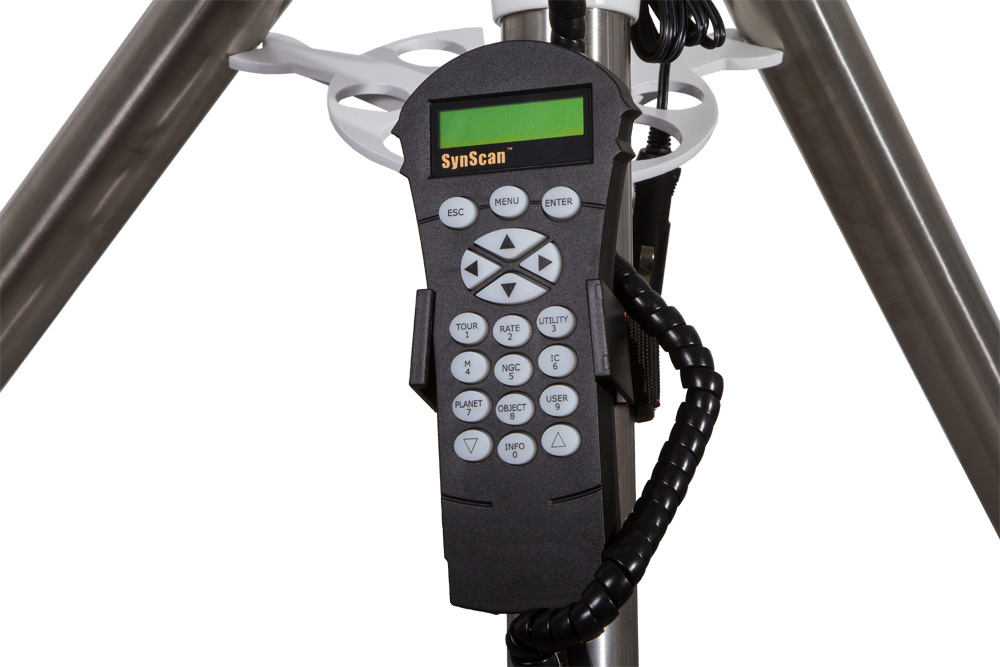 Для управления используется пульт. Кроме того, монтировку можно присоединить к компьютеру для управления с помощью специальной программы-планетария. Специальный порт дает возможность подключить к монтировке автогид (приобретается отдельно).