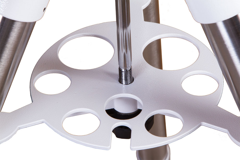 Монтировка комплектуется мощной стальной треногой NEQ5. Она надежная и прочная – крупный телескоп стоит на ней устойчиво даже в ветреный день. Высоту ножек треноги можно регулировать. Лоток для аксессуаров включен в комплект поставки.
