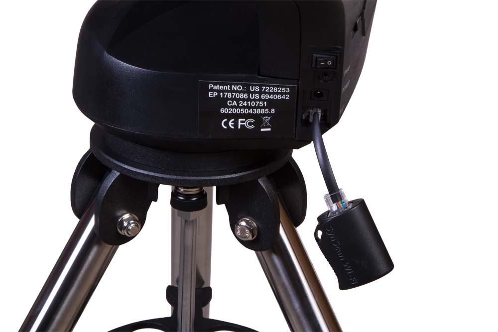 Для управления монтировкой используется бесплатное мобильное приложение SynScan Pro, содержащее информацию о 42 900 космических объектах. Благодаря адаптеру Wi-Fi доступ к SynScan GOTO можно получить и при помощи смартфона или планшета. Этот адаптер создает собственную сеть Wi-Fi, не зависит от других интернет-подключений, не требует отдельного питания. Все, что нужно – установить на мобильное устройство приложение SynScan Pro. Настройка техники займет не более минуты, после чего к монтировке можно будет подключаться удаленно.