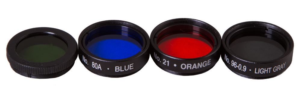 В набор также входят светодиодный фонарик и набор светофильтров, которые используются для получения более контрастного изображения планетарных дисков и лунной поверхности. С их помощью можно увидеть больше деталей в знакомых астрономических объектах. Посадочный диаметр каждого светофильтра составляет 1,25".
