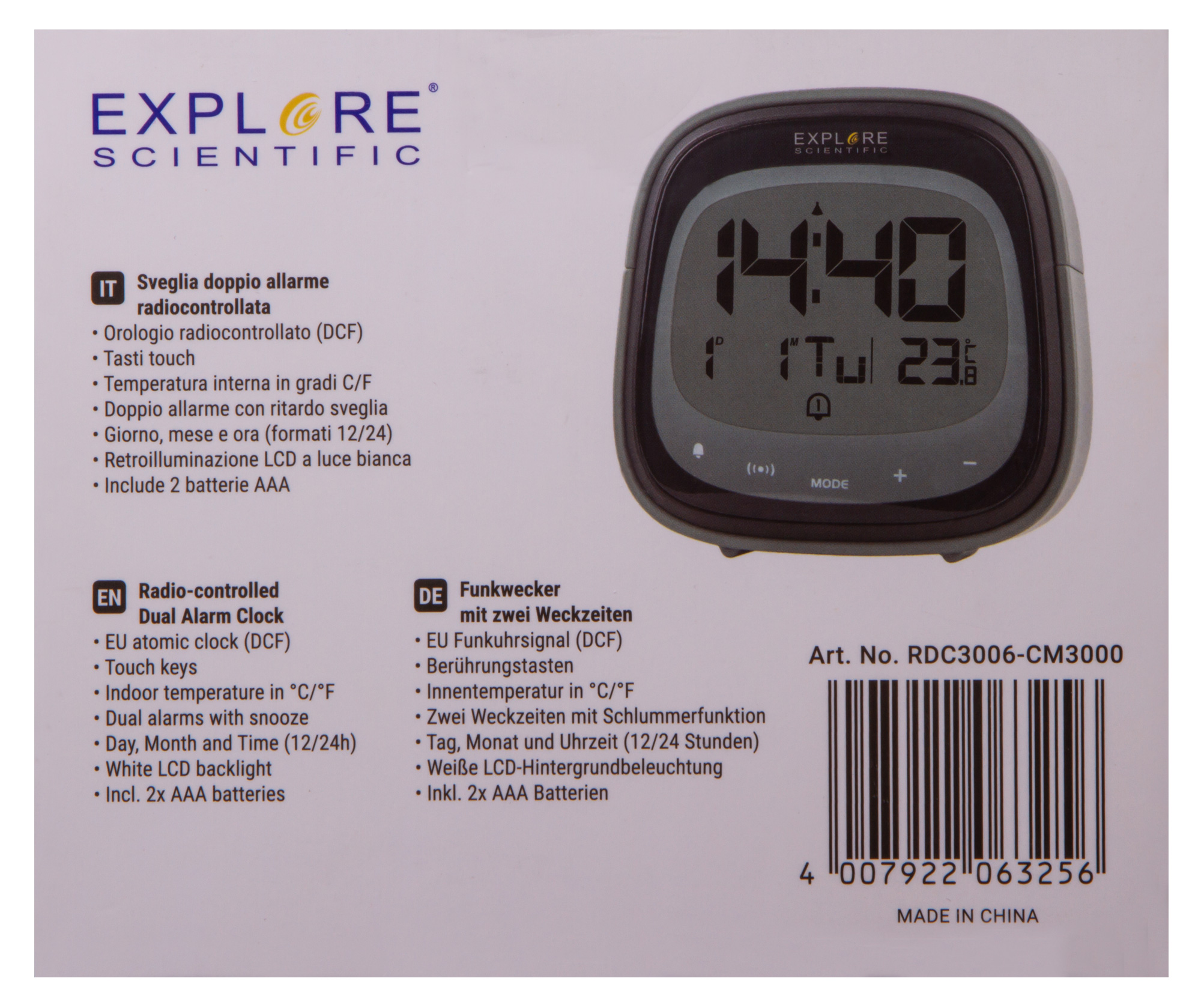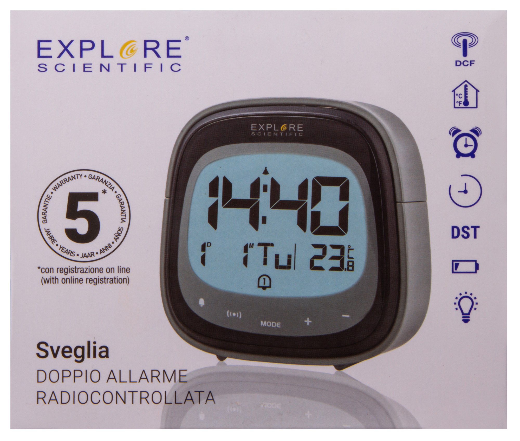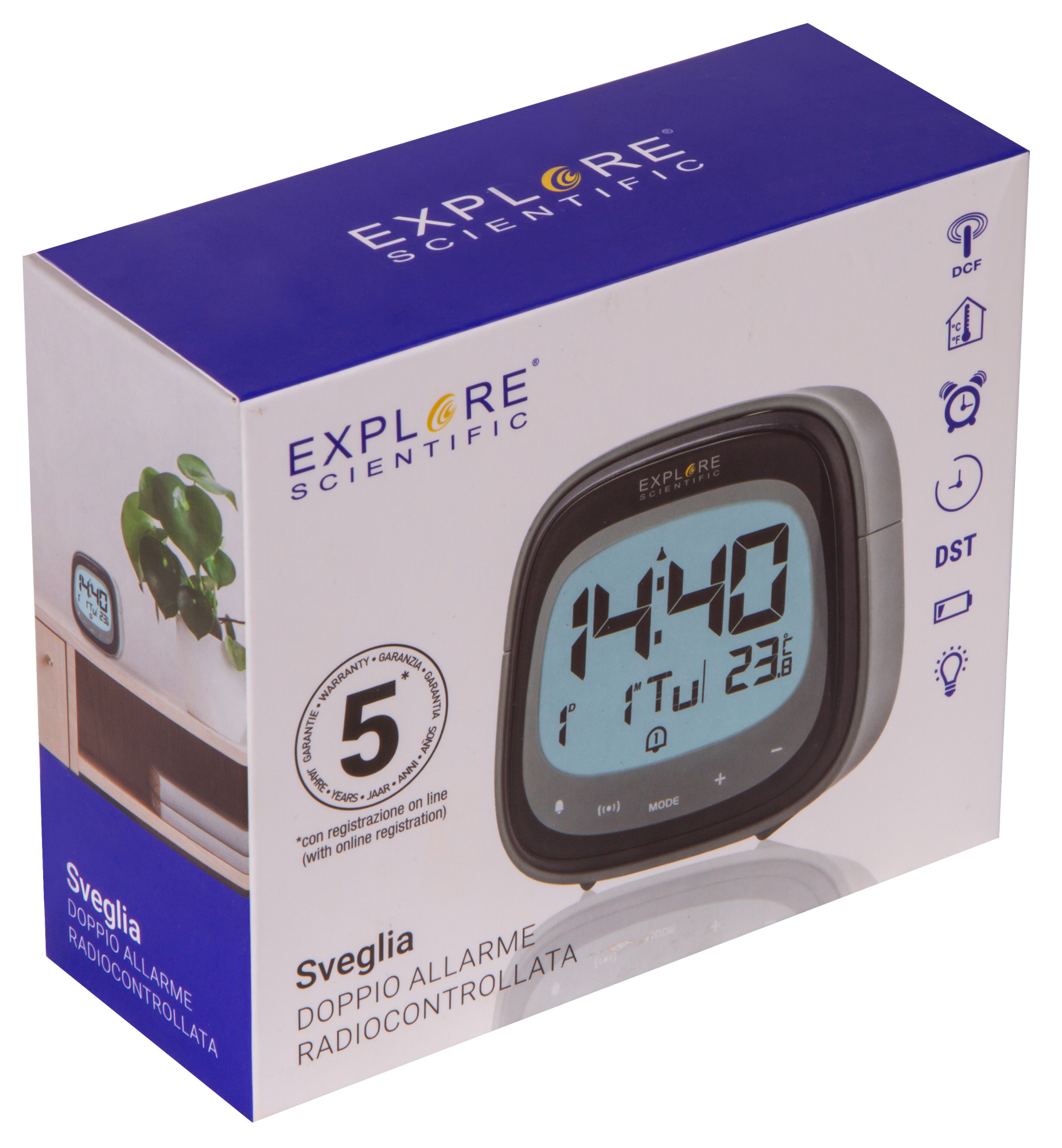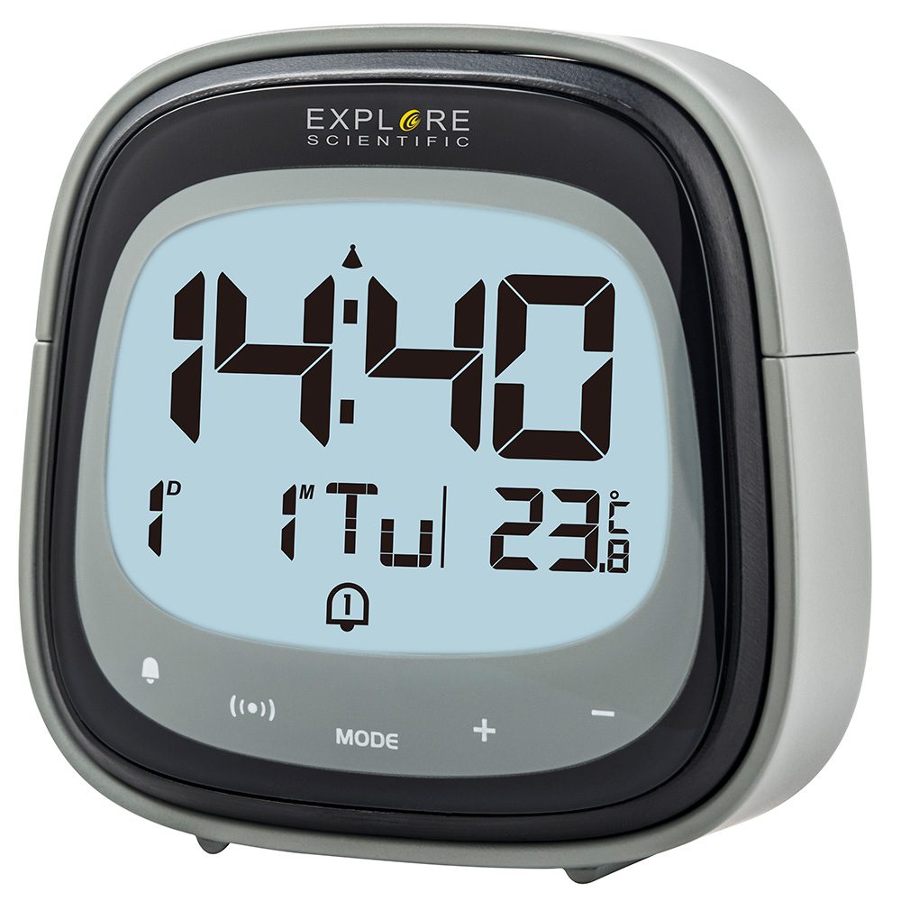 Цифровые часы Explore Scientific Dual умеют не только показывать время, но и измерять температуру в помещении. Также в них есть функция будильника, при этом можно установить сразу два срабатывания на разное время. Часы небольшие, с сенсорным управлением и яркой подсветкой экрана. Все символы хорошо читаются с большого расстояния и ясно видны даже в полной темноте.