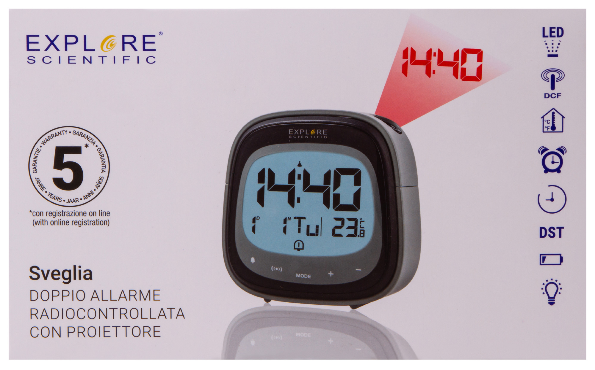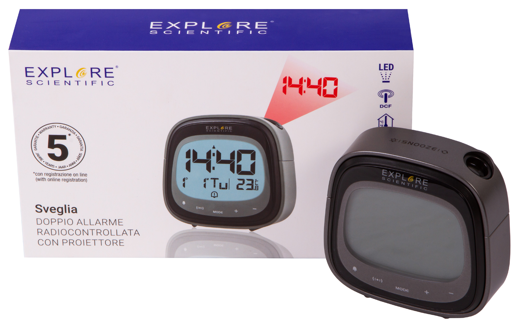 Цифровые часы Explore Scientific предназначены не только для того, чтобы показывать время. Также они измеряют температуру и способны вовремя поднять на работу. Но самая интересная их функция – проектор, который создает изображение прямо на потолке.