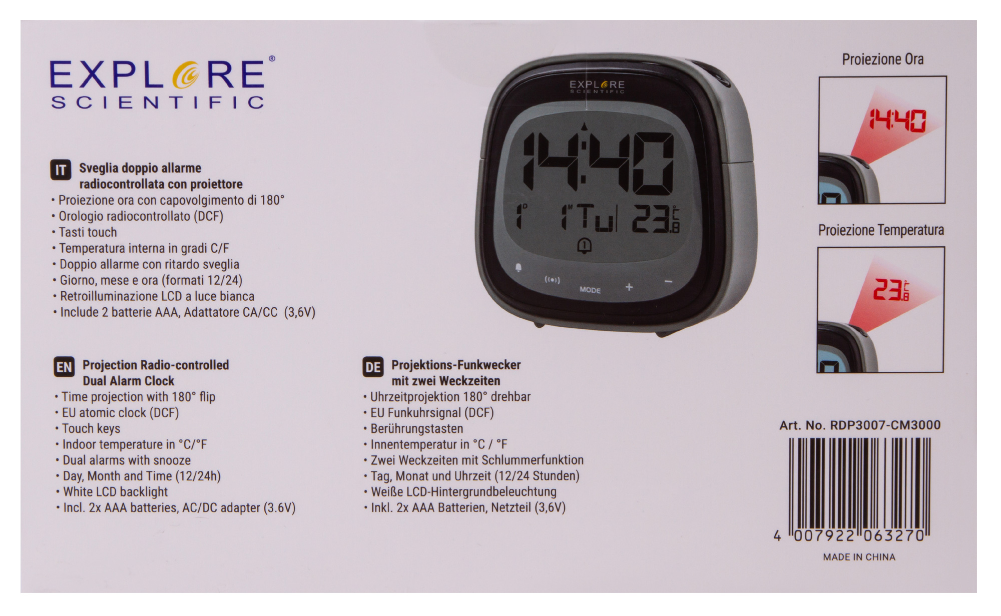 Часы цифровые Explore Scientific с проектором, черные