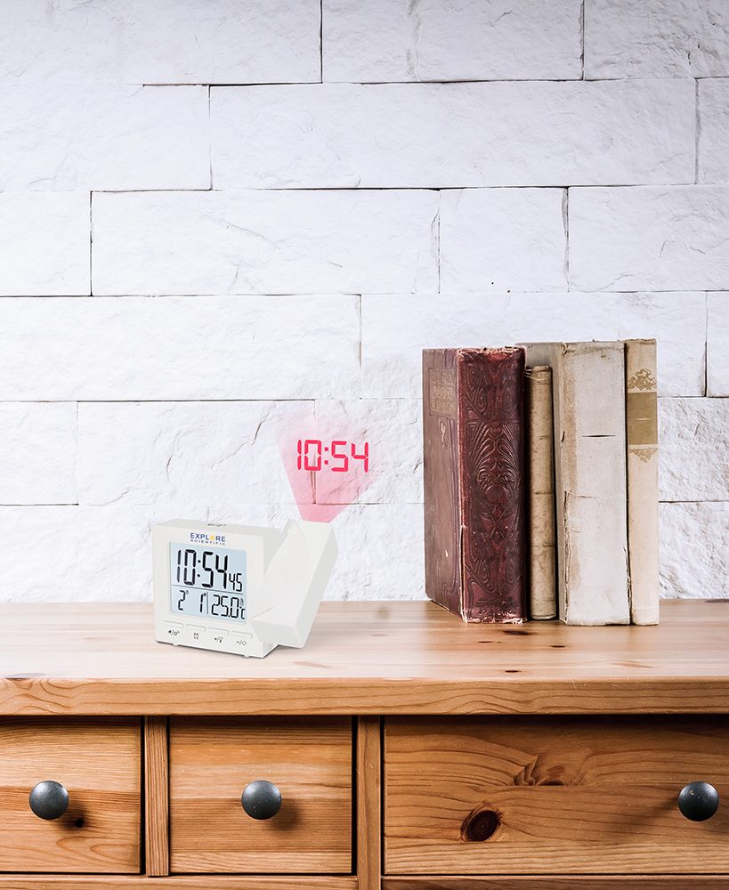Обычные часы могут показать только время, но цифровые часы Explore Scientific способны на большее! Это и будильник, и календарь, и даже термометр в одном небольшом приборе. А также проектор, который передает на стену или потолок крупное и четкое изображение времени. Часы хорошо впишутся в любой интерьер, особенно в современном стиле, и порадуют владельца широким функционалом.