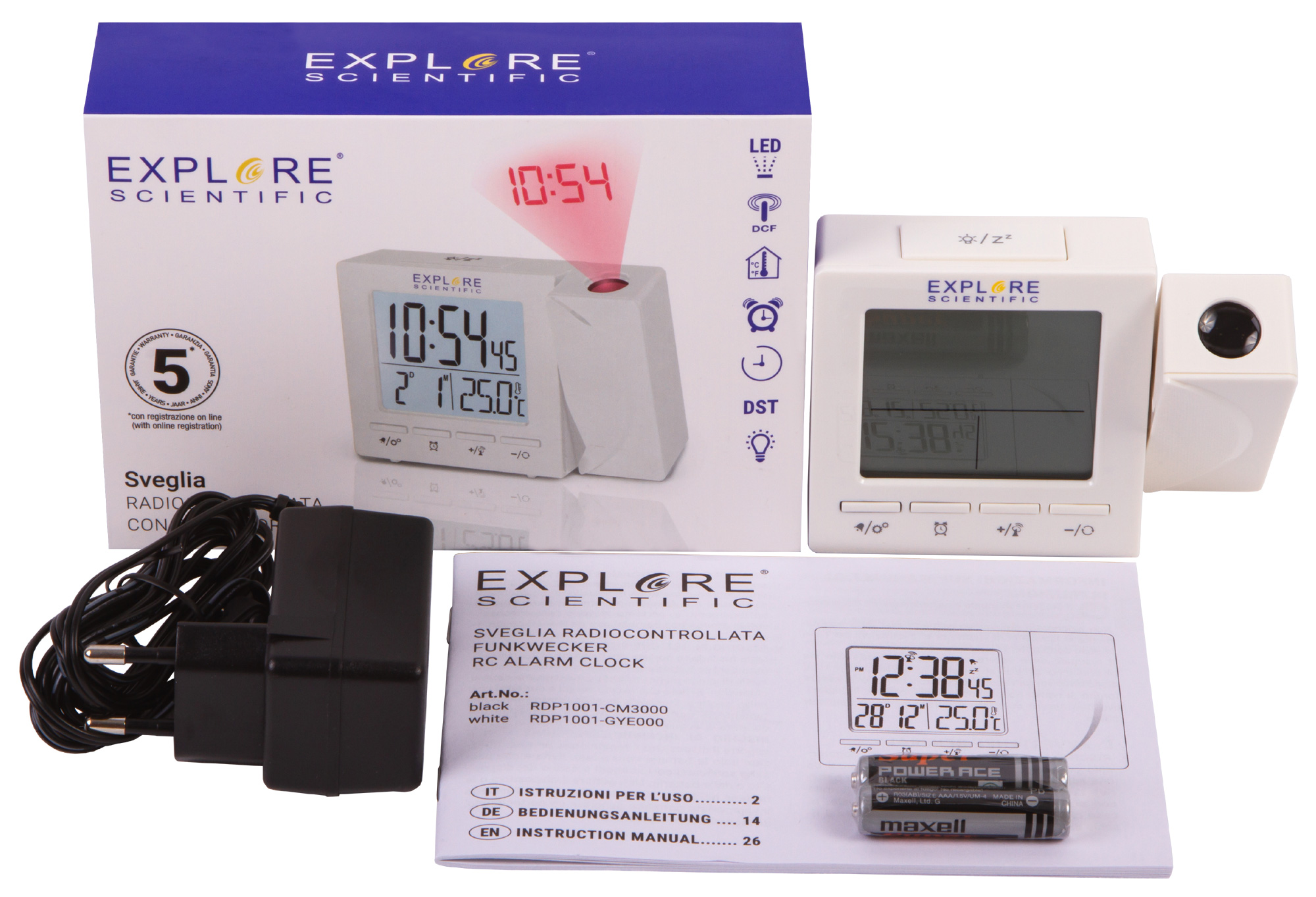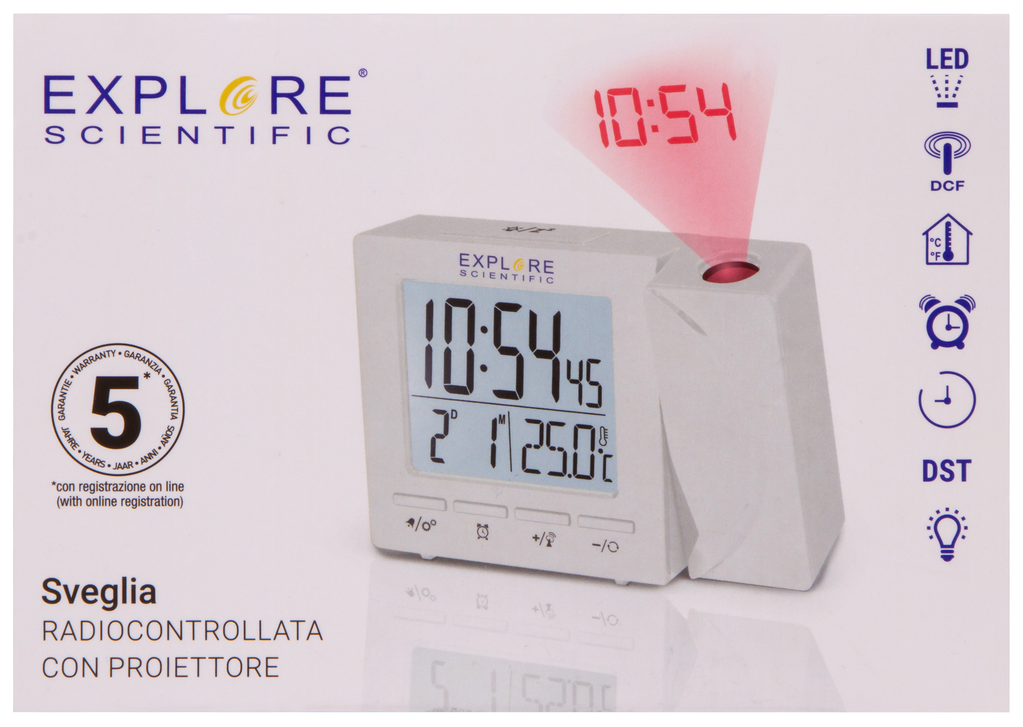 Часы цифровые Explore Scientific с проектором и термометром, белые