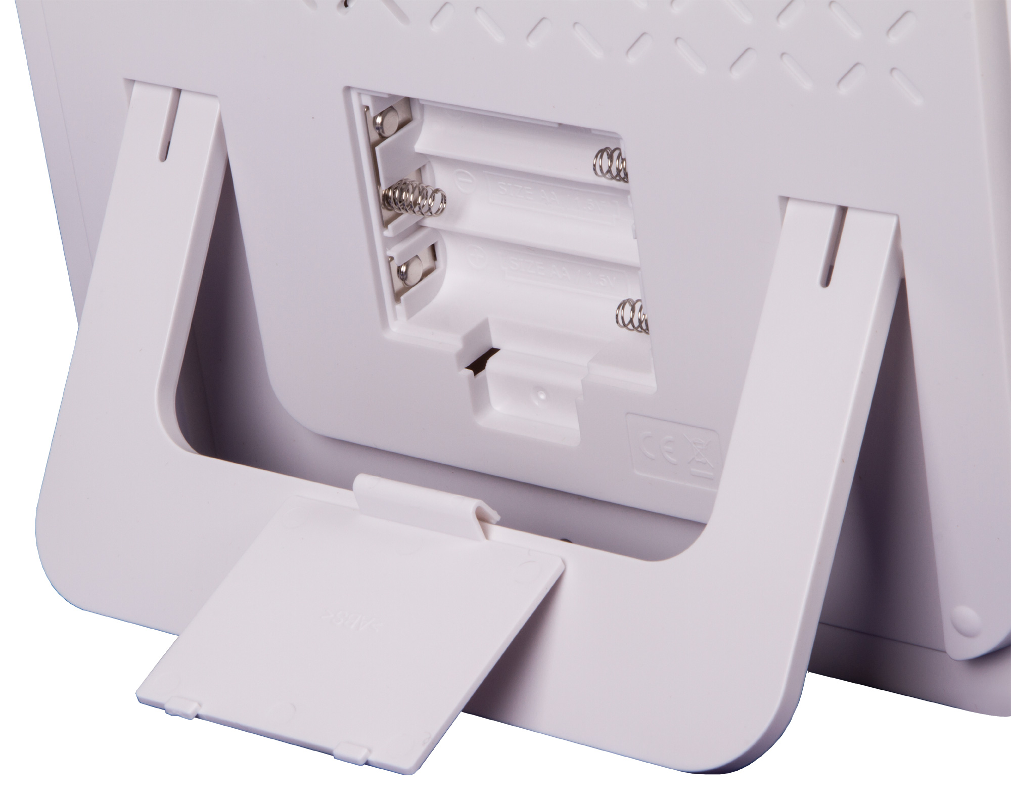 Прибор можно ставить на ровную горизонтальную поверхность или вешать на стену. Для питания используются батарейки (нет в комплекте).