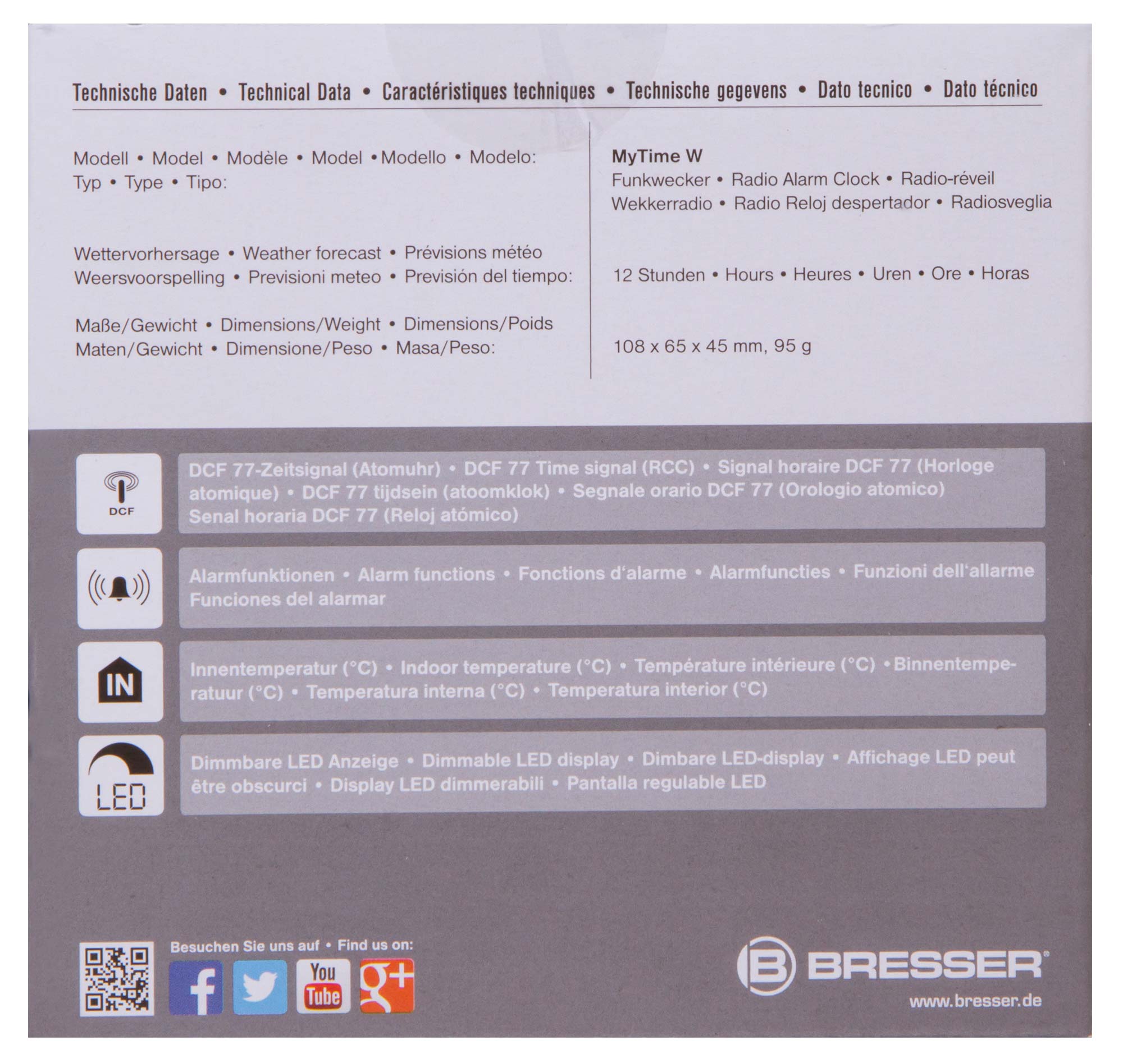 Bresser MyTime W Color LED – цифровые часы с функцией будильника. Они выполнены в лаконичном современном дизайне и способны стать отличным подарком человеку с взыскательным вкусом. Часы показывают время, дату и температуру. Показания сменяют друг друга автоматически, их также можно переключать в ручном режиме.