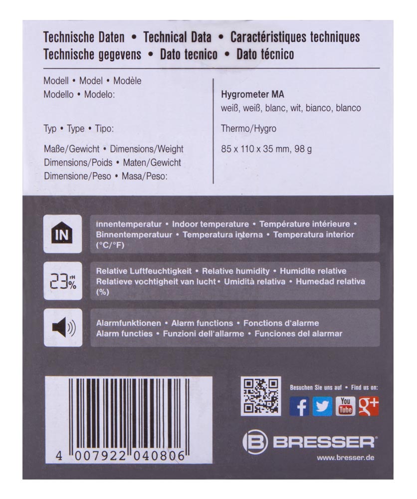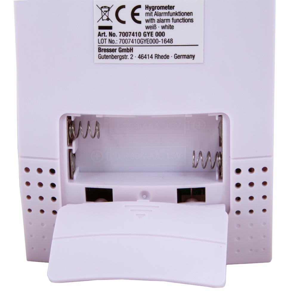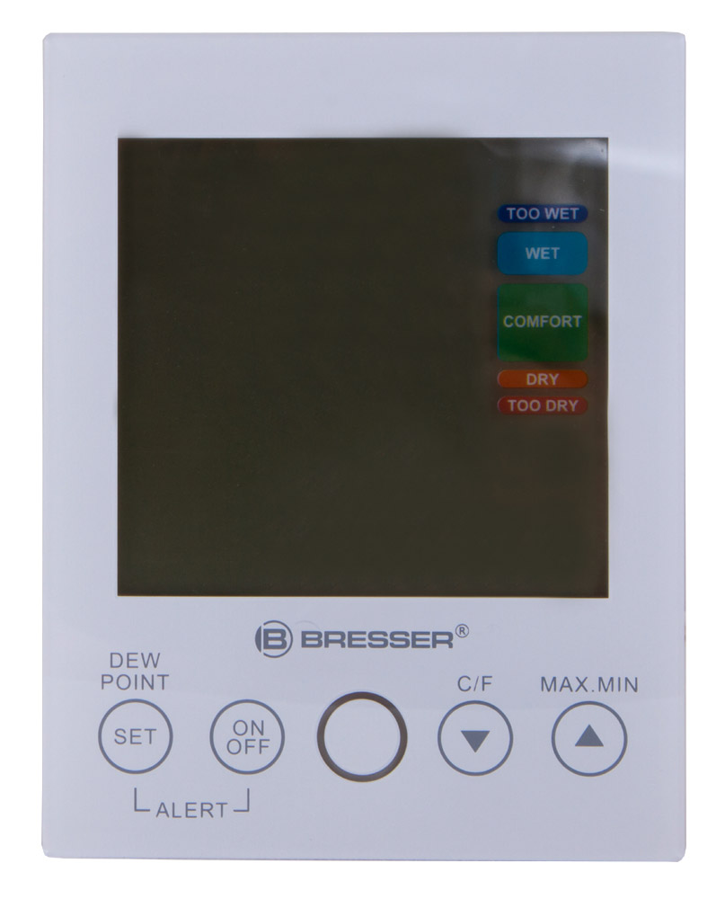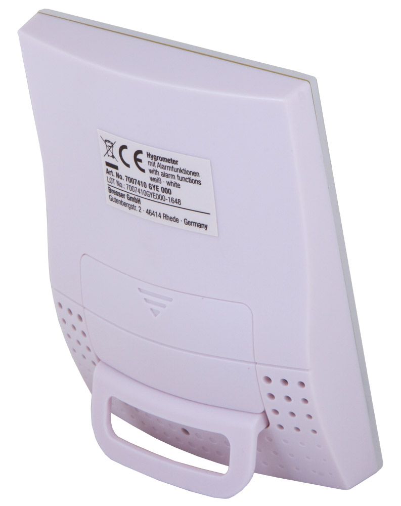 Bresser Mould Alert – комнатный гигрометр, который измеряет влажность воздуха и температуру в помещении. Он умеет оценивать уровень общего комфорта, предупреждать звуком о негативных изменениях микроклимата, рисовать график изменения влажности за последние сутки. Гигрометр можно установить на любой горизонтальной поверхности на специальную съемную подставку. Для питания используются батарейки (нет в комплекте).