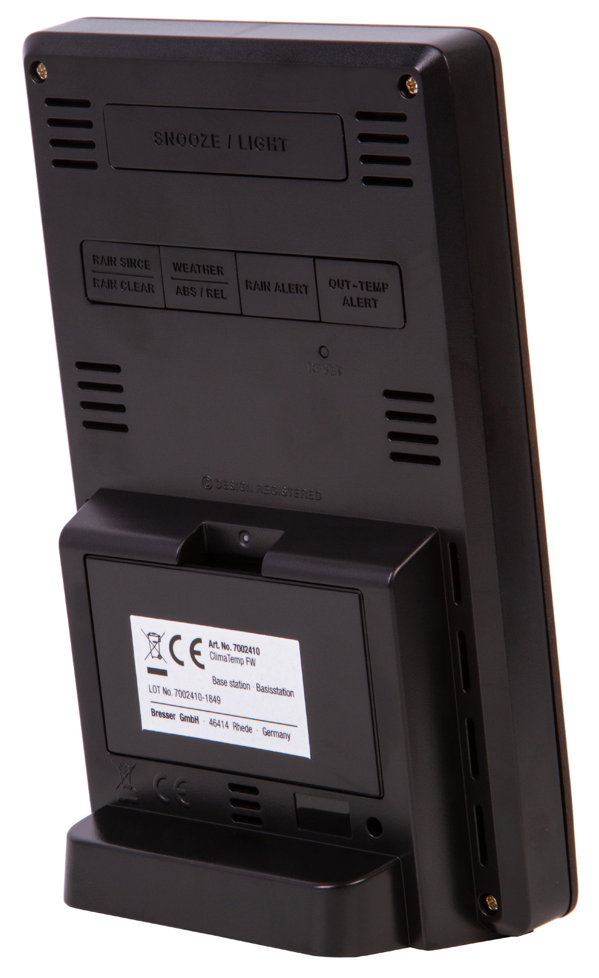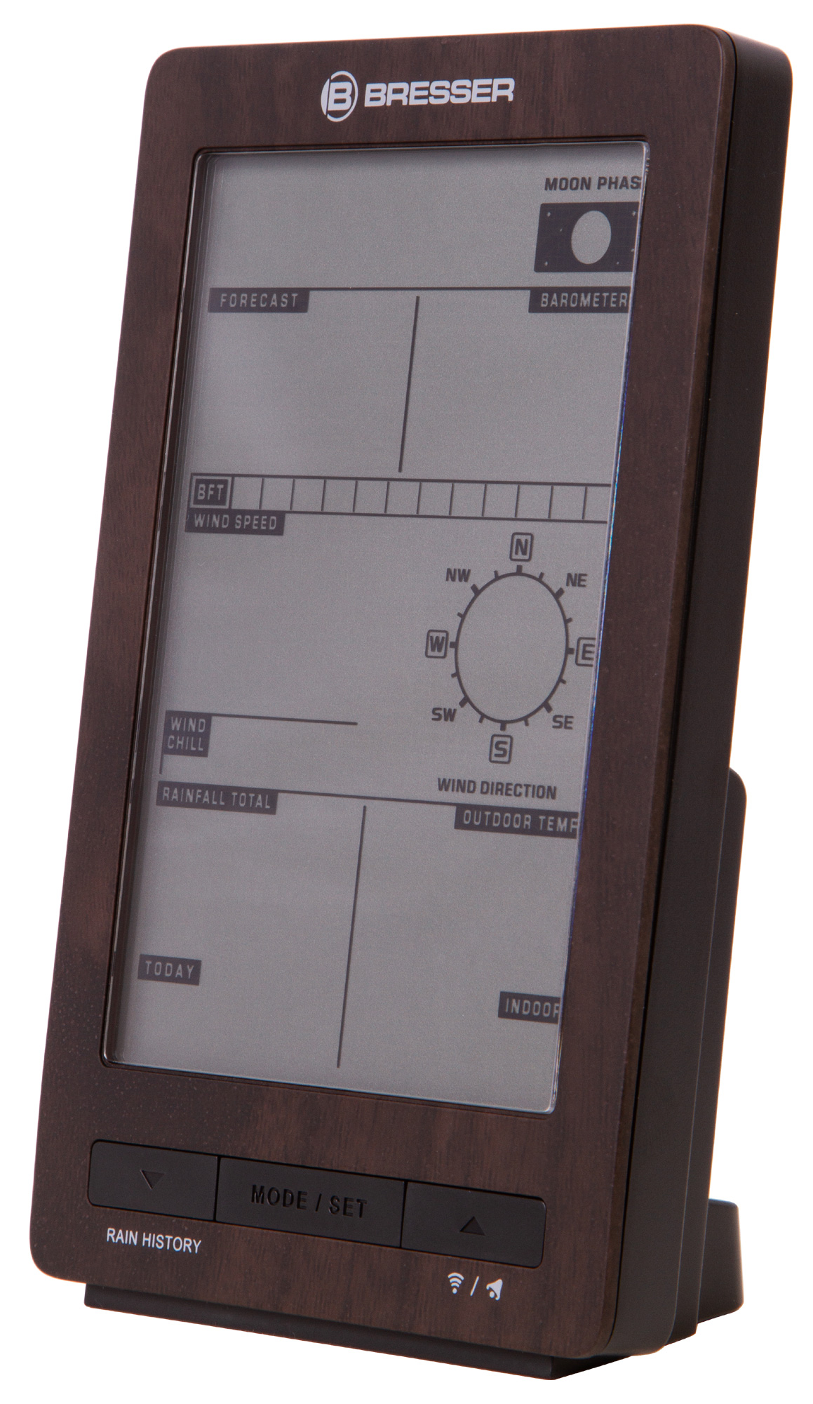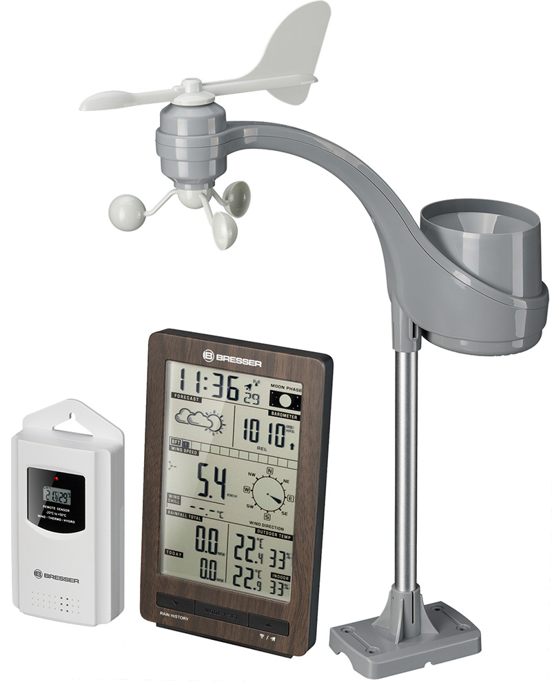 Профессиональная метеостанция Bresser ClimaTemp FW позволяет следить за всеми капризами погоды. В комплекте идут два метеодатчика, которые измеряют температуру и влажность воздуха, определяют направление и скорость ветра, подсчитывают количество выпавших осадков и информируют об изменении давления. Это настоящий метеоцентр, который можно разместить в городской квартире или загородном доме. Обратите внимание на внешний вид прибора – корпус под дерево отличает эту модель от многих других, она прекрасно подойдет к классическому интерьеру.