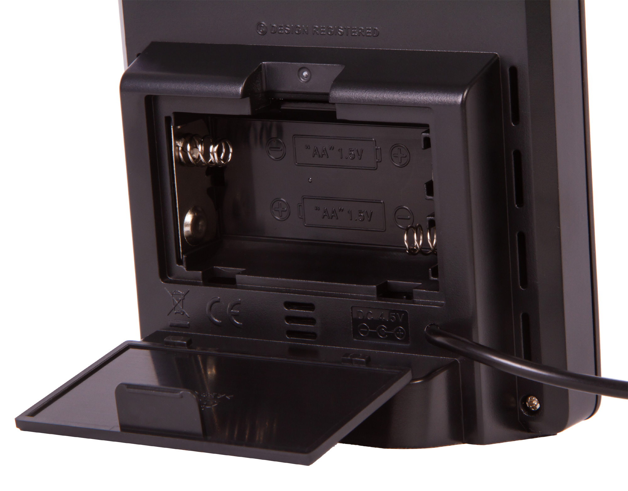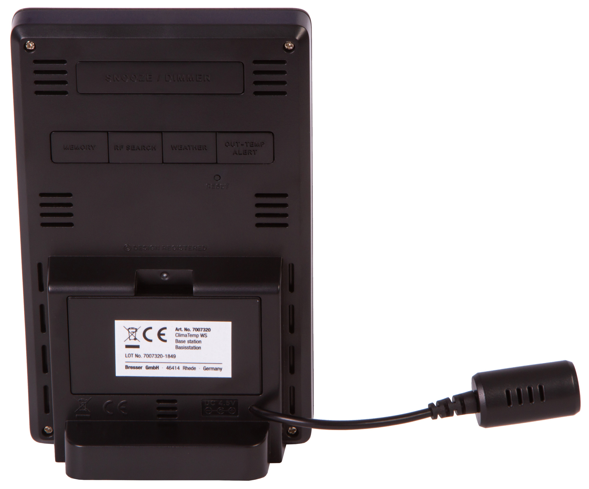 Метеостанция может работать от сети переменного тока (кабель в комплекте) или батареек (нет в комплекте). Датчик работает от батареек (нет в комплекте).