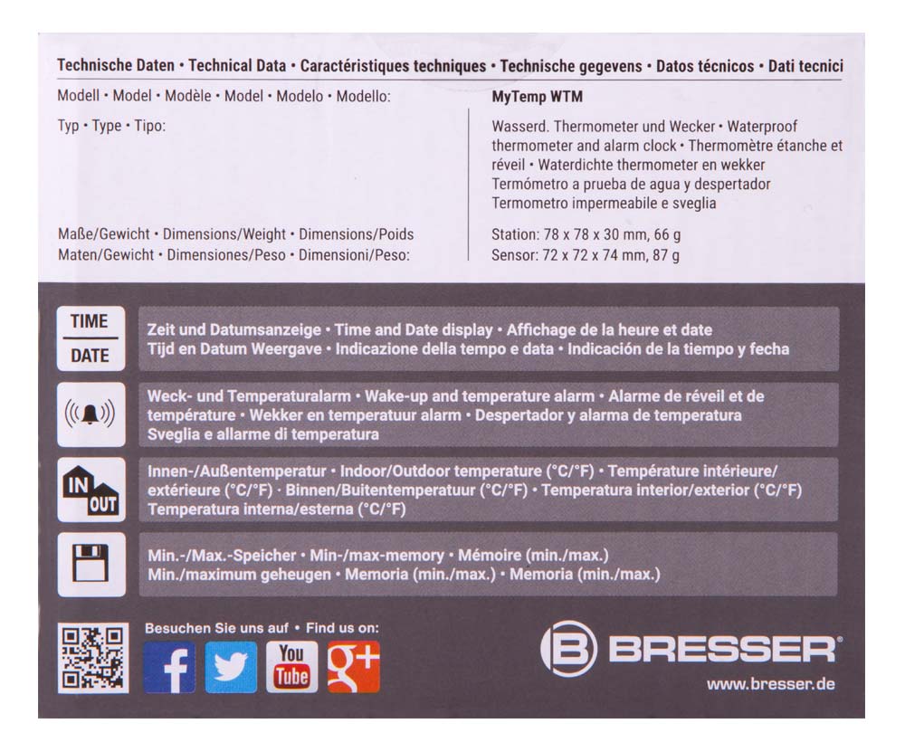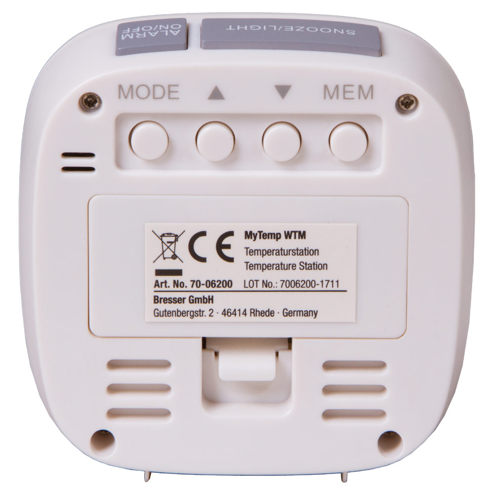 Метеостанция Bresser MyTemp WTM – это небольшой термометр для ванной комнаты и часы с будильником. Она умеет измерять температуру, но главное в ней – водозащищенный сенсорный датчик, который можно погружать под воду. Датчик используется для измерения температуры воды и подсказывает, подходит ли она для принятия ванны или нет.