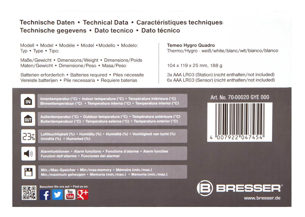 Метеостанция Bresser Temeo Hygro Quadro, белая
