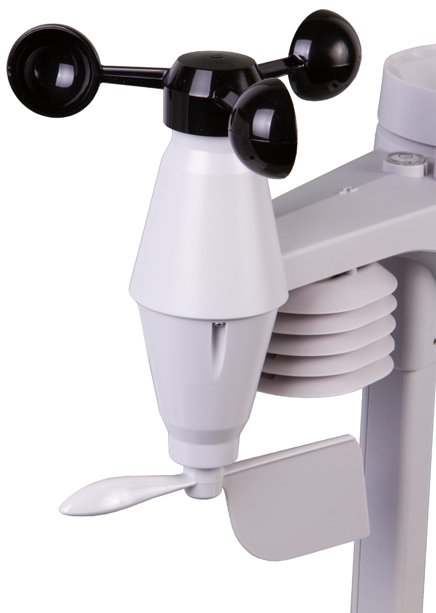 Всю информацию, которую собирают датчик и основной модуль, можно увидеть на монохромном экране метеостанции. Часть данных представлена в виде цифр, часть – в виде изображений и иконок, есть даже шкала индекса Бофорта. Также в верхней части экрана можно видеть время, дату, день недели и фазу Луны. На внешней панели нет отвлекающих элементов, так как кнопки управления вынесены на заднюю крышку. Благодаря этому прибор выглядит современно и лаконично.