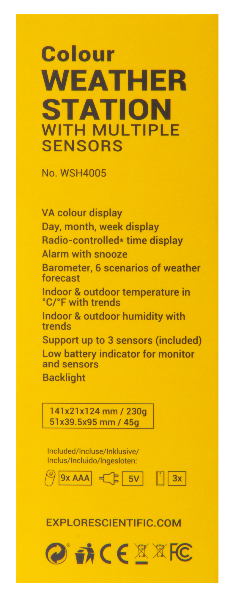 Метеостанция Explore Scientific с тремя датчиками – это домашняя метеостанция, с помощью которой удобно следить за изменениями температуры и влажности воздуха в загородном доме или большой квартире. Датчики можно поставить в разных комнатах или разместить на улице – они будут проводить измерения и передавать их результаты на основной модуль. Сама метеостанция тоже снабжена встроенными гигрометром и термометром, поэтому в итоге получится собирать показания в четырех местах одновременно.