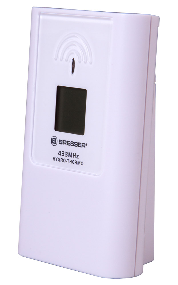 Для измерений за пределами квартиры используется беспроводной наружный датчик. Информация выводится на его небольшом экране и передается на основной модуль по радиоканалу. Устанавливать датчик можно на расстоянии до 30 метров от метеостанции. Есть возможность подключения дополнительных датчиков (не более трех).