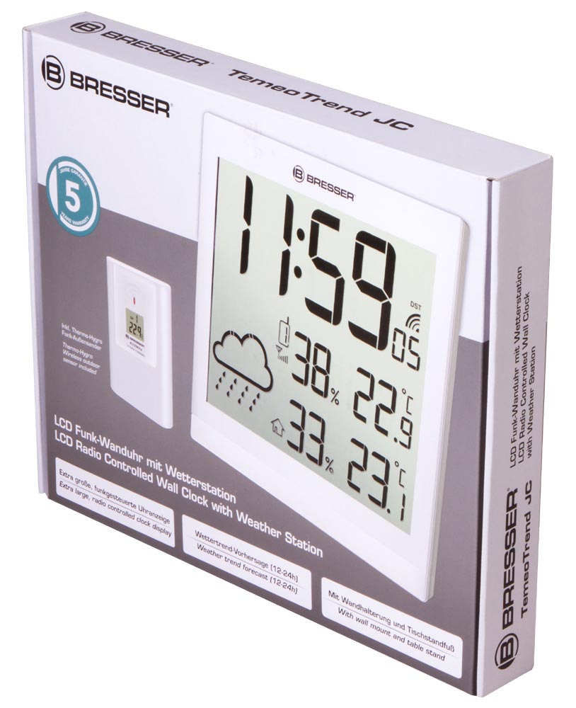 Домашняя метеостанция Bresser TemeoTrend JC LCD измеряет температуру и влажность воздуха внутри и снаружи помещения. Кроме того, она отображает время, поэтому вполне может заменить собой часы с будильником. Метеостанция Bresser TemeoTrend JC LCD сообщит вам об изменении микроклимата вашего дома и составит прогноз погоды на ближайшее время.