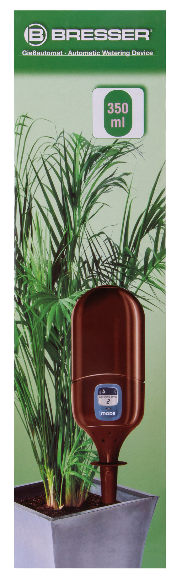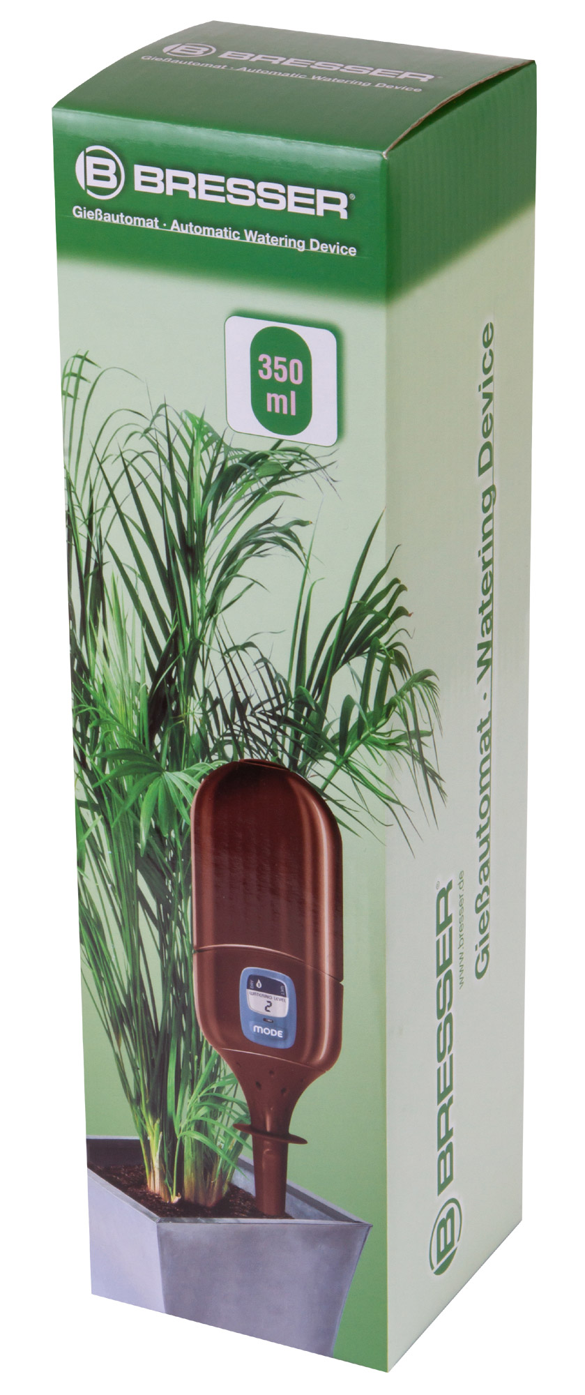 Устройство автоматического полива растений Bresser предназначено для контроля уровня влажности почвы у горшочных растений. В нижней части расположен сенсор, который постоянно информирует о состоянии растения, в верхней – резервуар для воды объемом 350 мл. Вы выбираете режим полива, все остальное прибор берет на себя. Если вода в резервуаре подойдет к концу, устройство своевременно оповестит вас об этом.