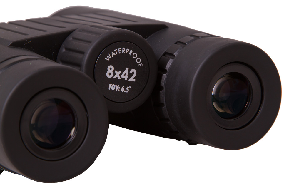 Корпус бинокля полностью обрезинен и защищен от воздействия воды. Бинокль надежен в захвате и крайне неприхотлив в эксплуатации. Есть штативное гнездо для установки бинокля на стандартную фототреногу. Это удобно при проведении длительных стационарных наблюдений. Bresser National Geographic 8x42 WP позволяет точно настроить под себя все параметры: диоптрии окуляров, межзрачковое расстояние, резкость. Бинокль подходит и тем, кто постоянно носит очки – выдвижные наглазники из мягкой резины складываются, что дает максимальное удобство наблюдений.