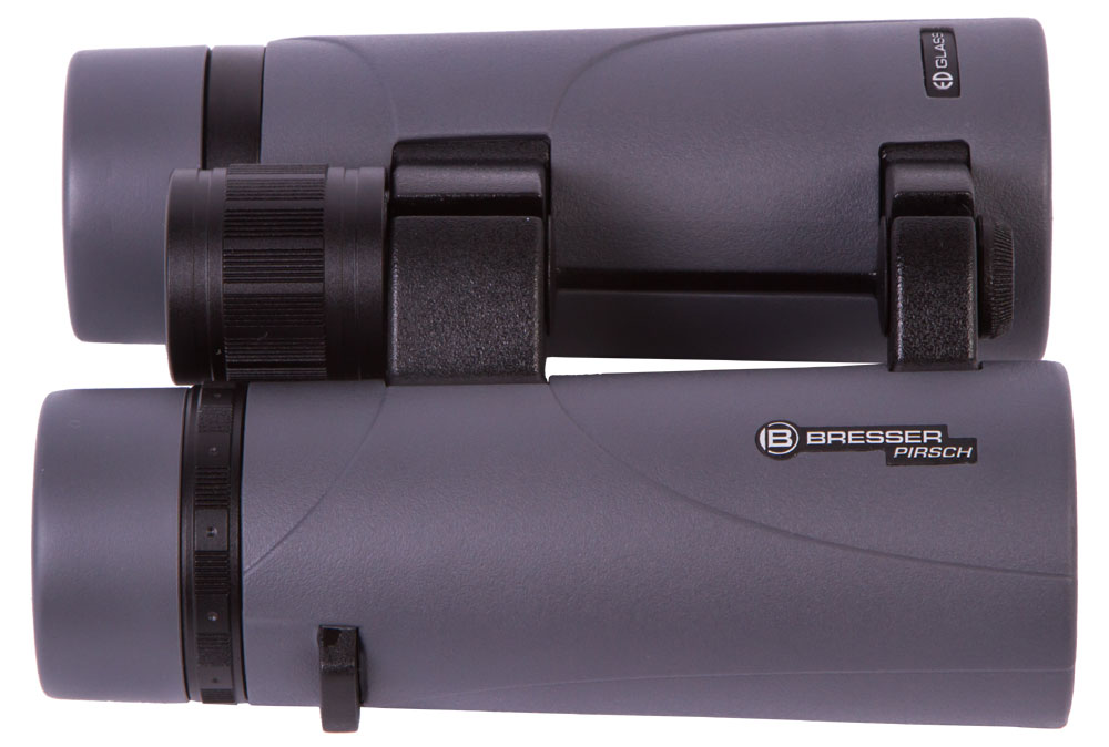 В Bresser Pirsch ED 8x42 используются окуляры с вынесенным зрачком и поворотно-выдвижные наглазники. Благодаря им в бинокль удобно смотреть в очках. Кроме того, конструкцией предусмотрены корректировка диоптрий на правом окуляре и регулировка межзрачкового расстояния.