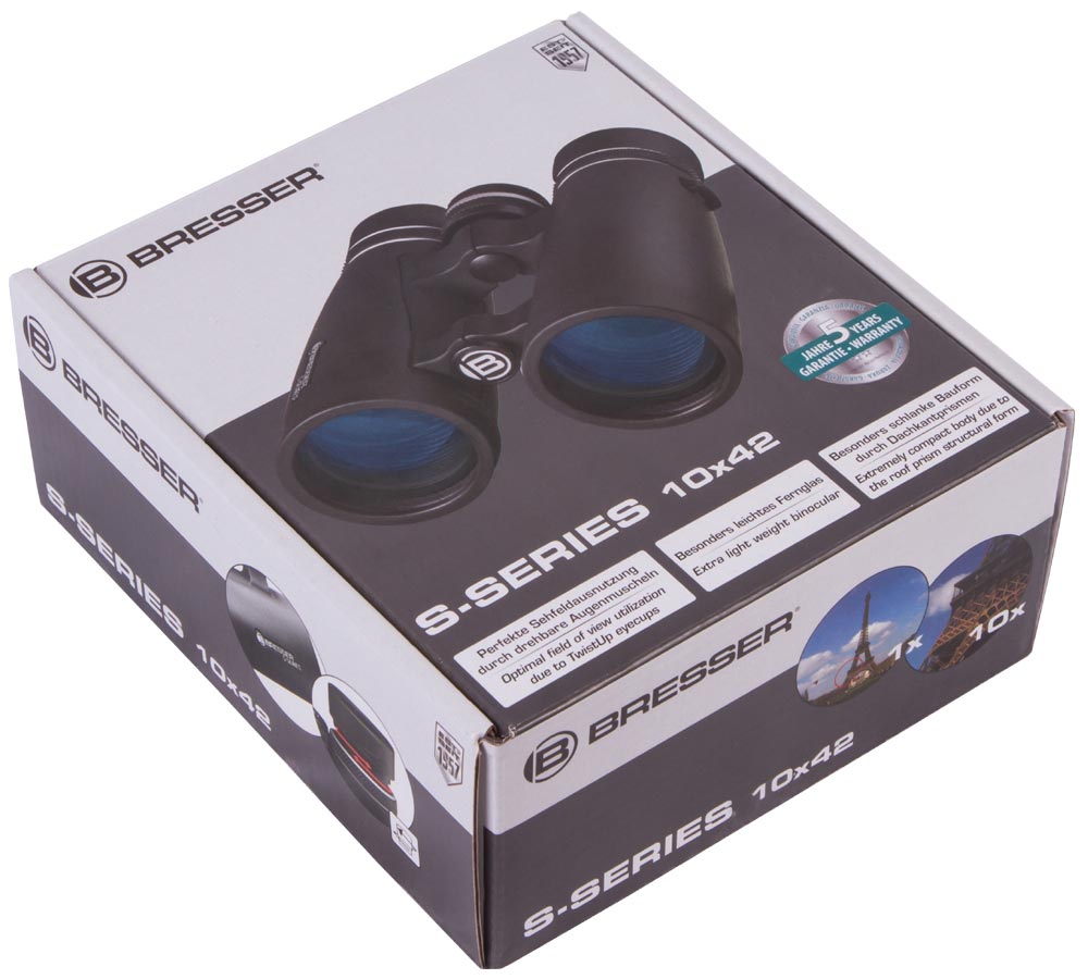 Бинокль Bresser S-Series 10x42 – оптический прибор для обзорных наблюдений. Он отлично подходит для изучения повадок птиц и животных и рассматривания ландшафтов. Бинокль легкий, поэтому с ним удобно путешествовать и вести длительные наблюдения с рук.