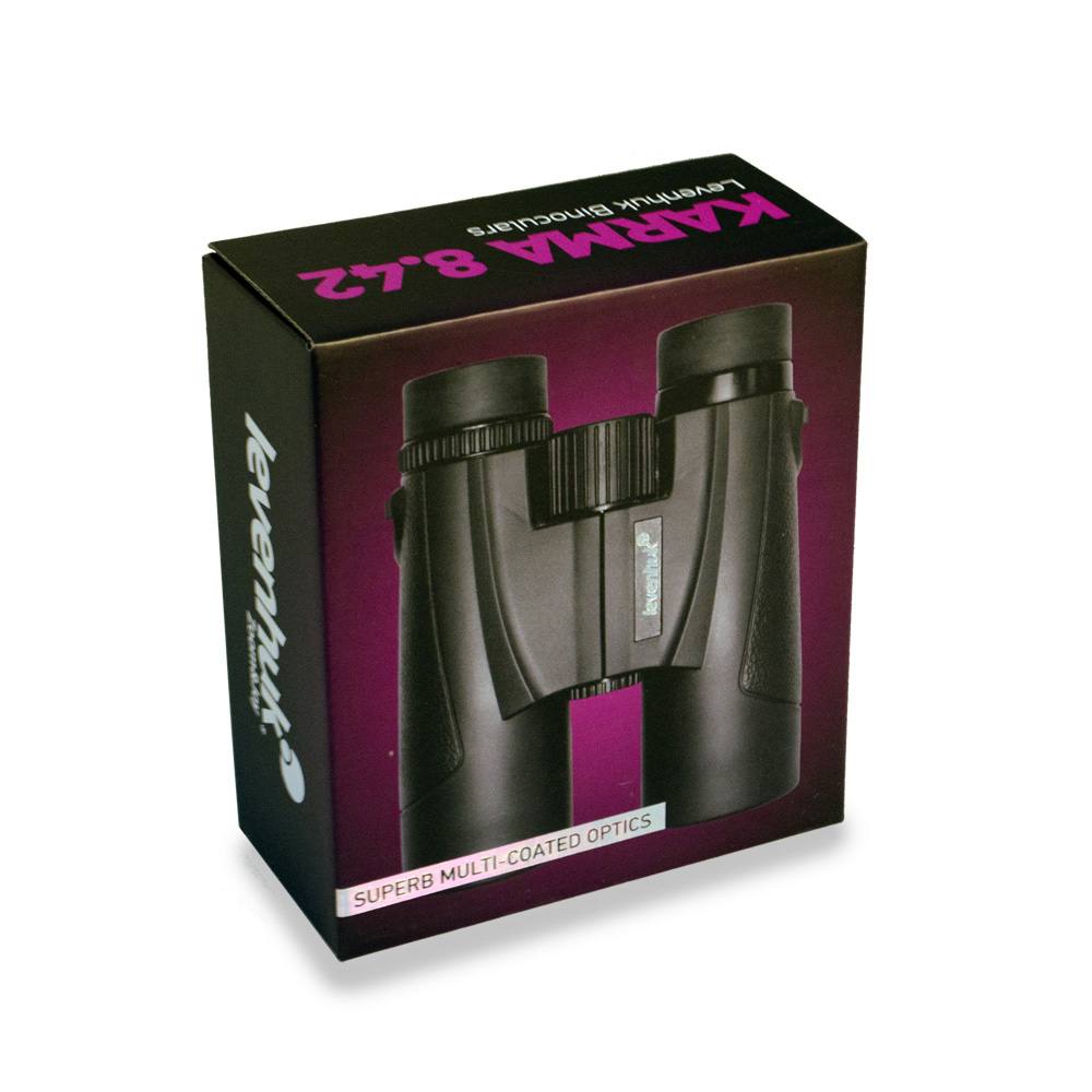 Чтобы сделать бинокль небольшим, в конструкции использованы компактные roof-призмы. Линзы с полным многослойным просветлением пропускают большое количество света. Даже при слабом освещении бинокль Levenhuk Karma 8x42 дает «живое» изображение с точной передачей естественных цветов.