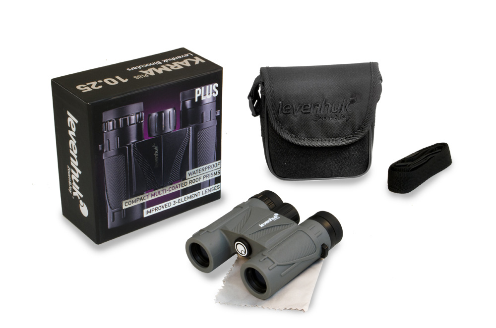 Бинокль Levenhuk Karma PLUS 10x25 – идеальный подарок любителю приключений! Бинокль очень небольшой – он легко поместится в сумку или даже карман. Благодаря широкому полю зрения вы сможете одним взглядом охватить большое пространство, а десятикратного увеличения хватит, чтобы хорошо разглядеть даже сильно удаленные объекты. Бинокль изготовлен в водонепроницаемом корпусе, так что его можно использовать даже в непогоду.