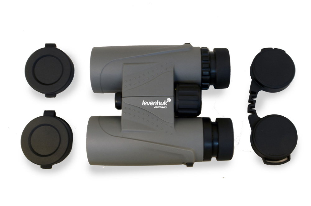 В оптической схеме используются roof-призмы. Окуляры состоят из трех оптических элементов в трех группах. На линзы нанесено многослойное просветляющее покрытие, поэтому картинка получается яркой, резкой и контрастной. Для наведения на объект используется барабан центральной фокусировки. На правом окуляре расположено кольцо диоптрийной корректировки. Для максимально комфортного использования бинокль снабжен поворотно-выдвижными наглазниками.