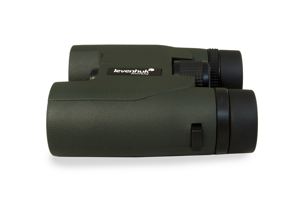 Удобство использования – еще один плюс этой модели. Вы можете легко менять межзрачковое расстояние, настраивать диоптрии и регулировать положение прибора относительно глаз. Поворотно-выдвижные наглазники имеют плавный ход и четко фиксируются в выбранном положении. Корпус не скользит даже в мокрых руках – рельефная темно-зеленая резиновая оболочка обеспечивает надежный захват прибора.