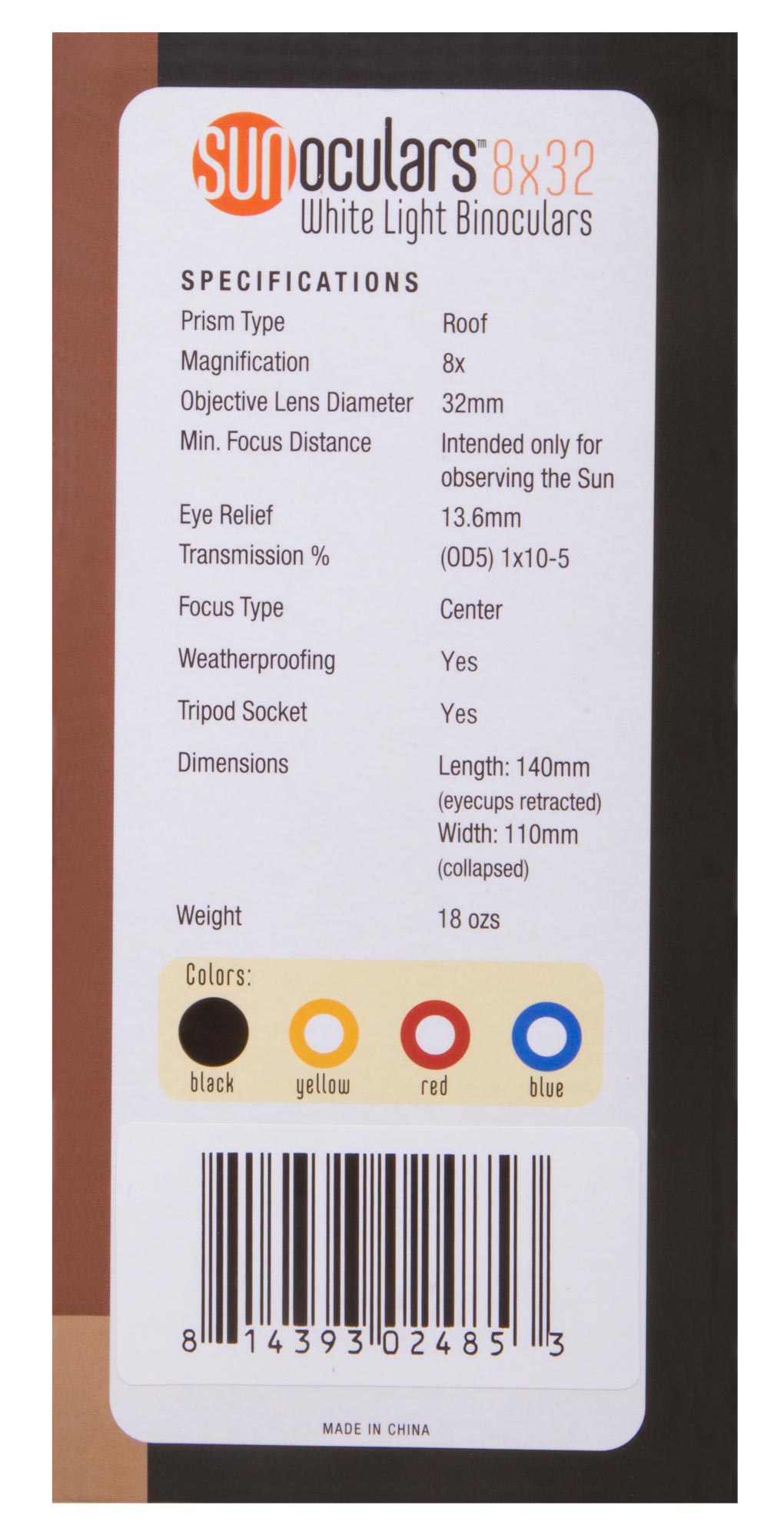 Обратите внимание: солнечный бинокль LUNT SUNoculars 8x32 нельзя использовать для обычных обзорных наблюдений.