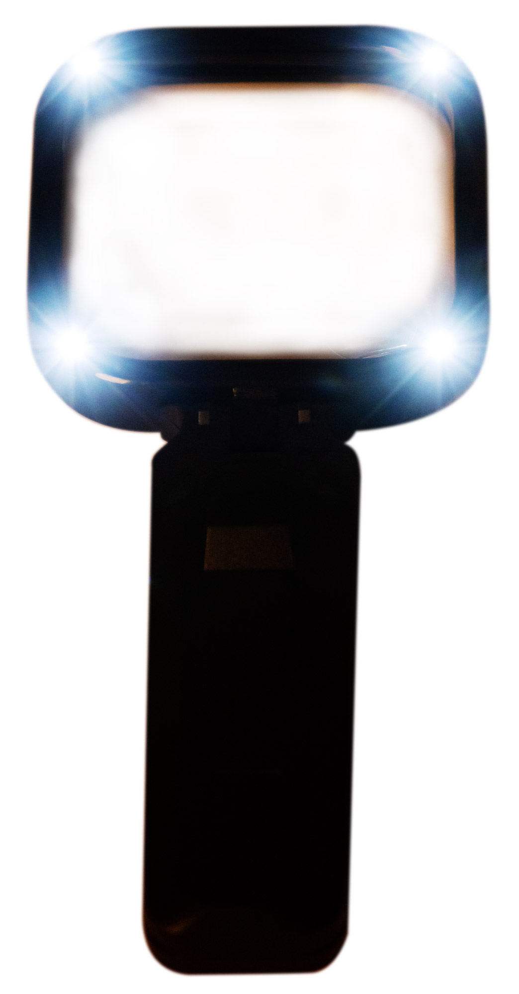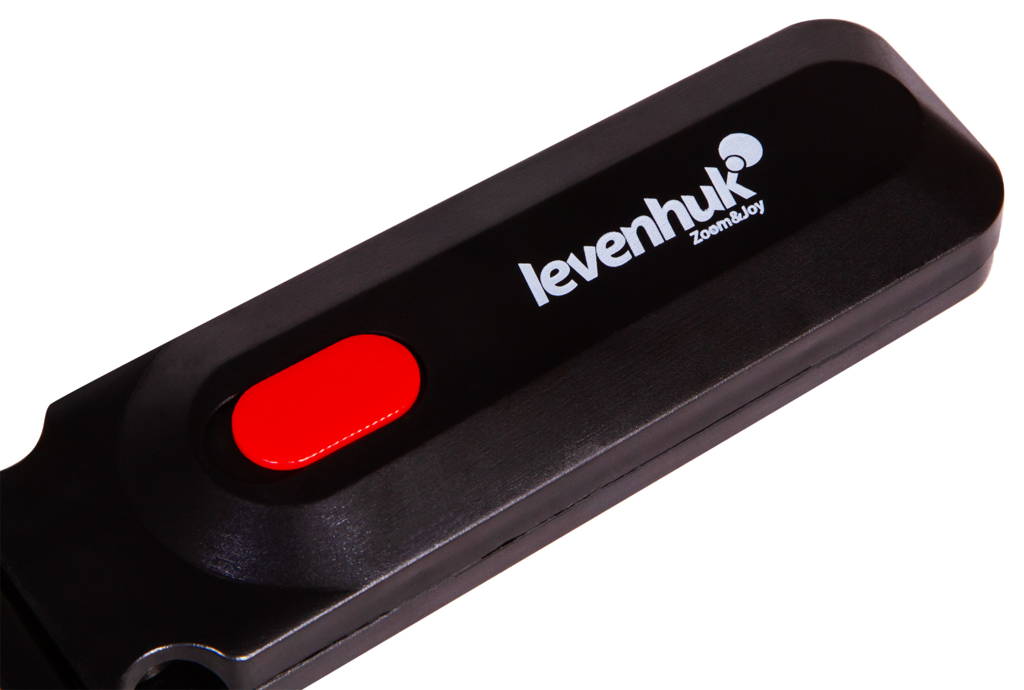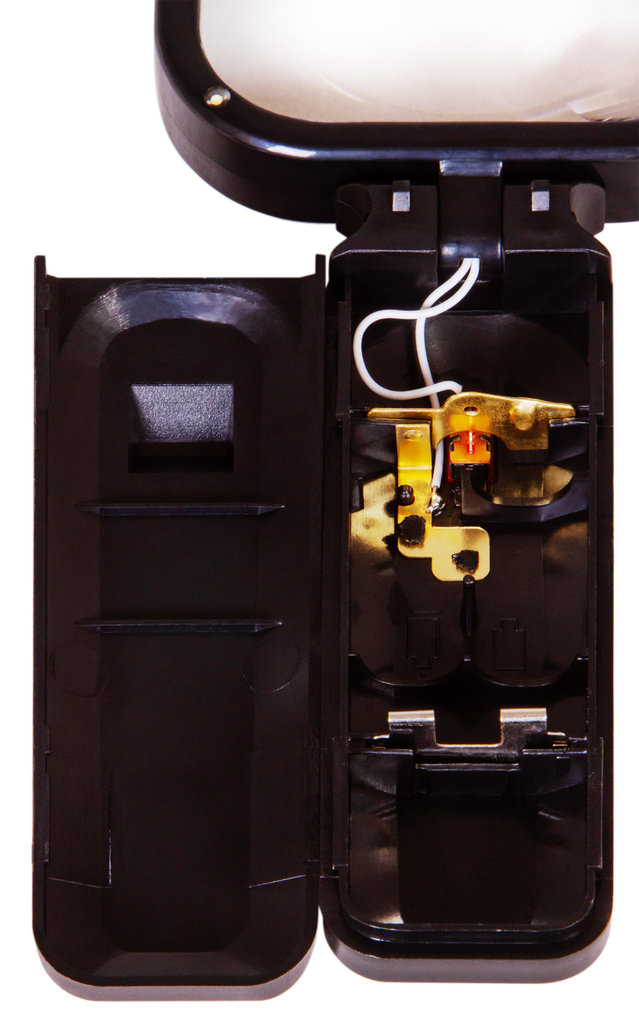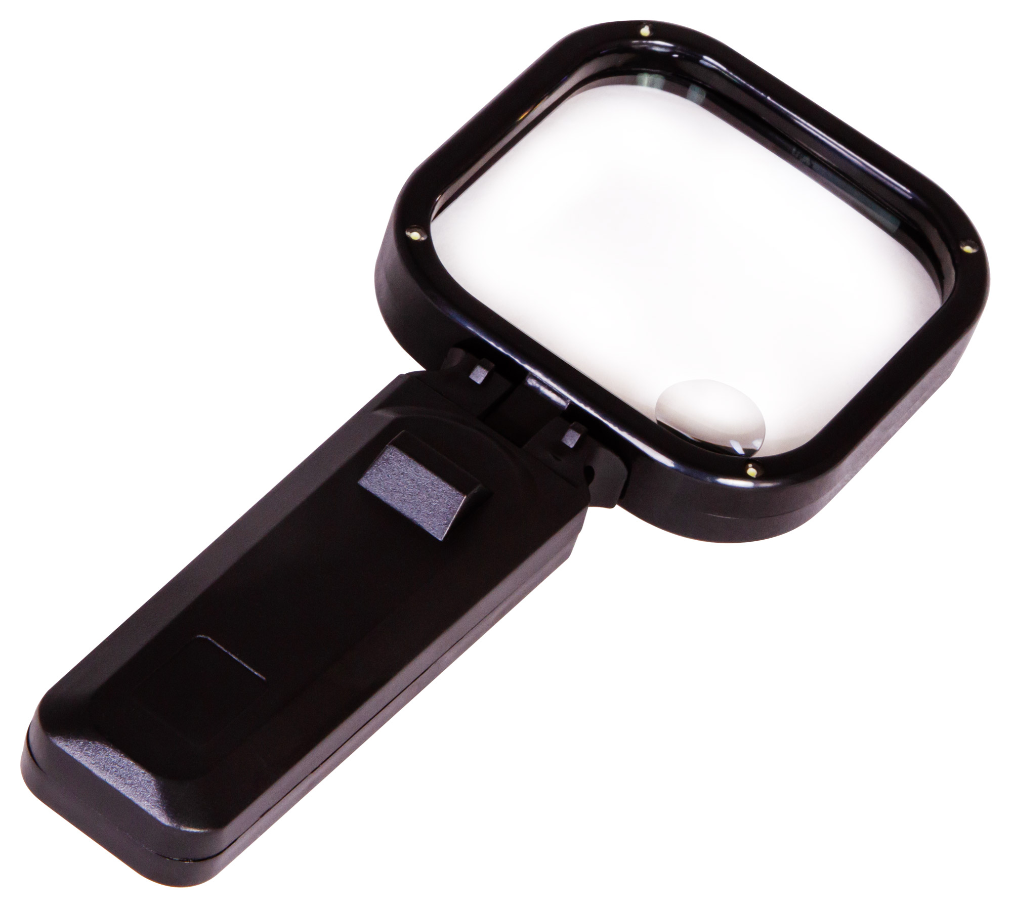 По основной рабочей области квадратная линза лупы Levenhuk Zeno Read ZR10 дает двукратное увеличение. Диаметр дополнительной 6-кратной линзы, имеющей круглую форму, составляет 2 сантиметра. Угол наклона линзы можно регулировать в широком диапазоне, подбирая наиболее комфортное расположение подсветки. Светодиоды работают от стандартных пальчиковых батареек (приобретаются отдельно).