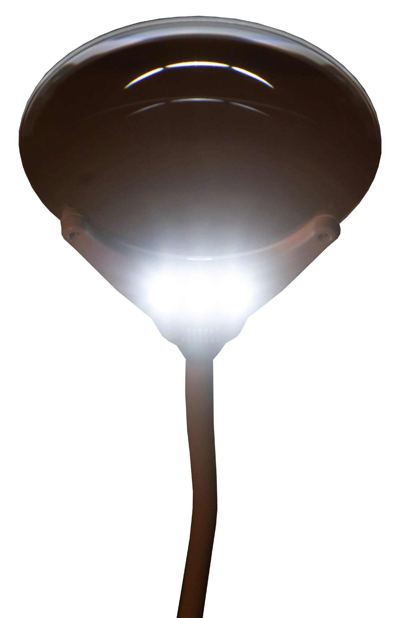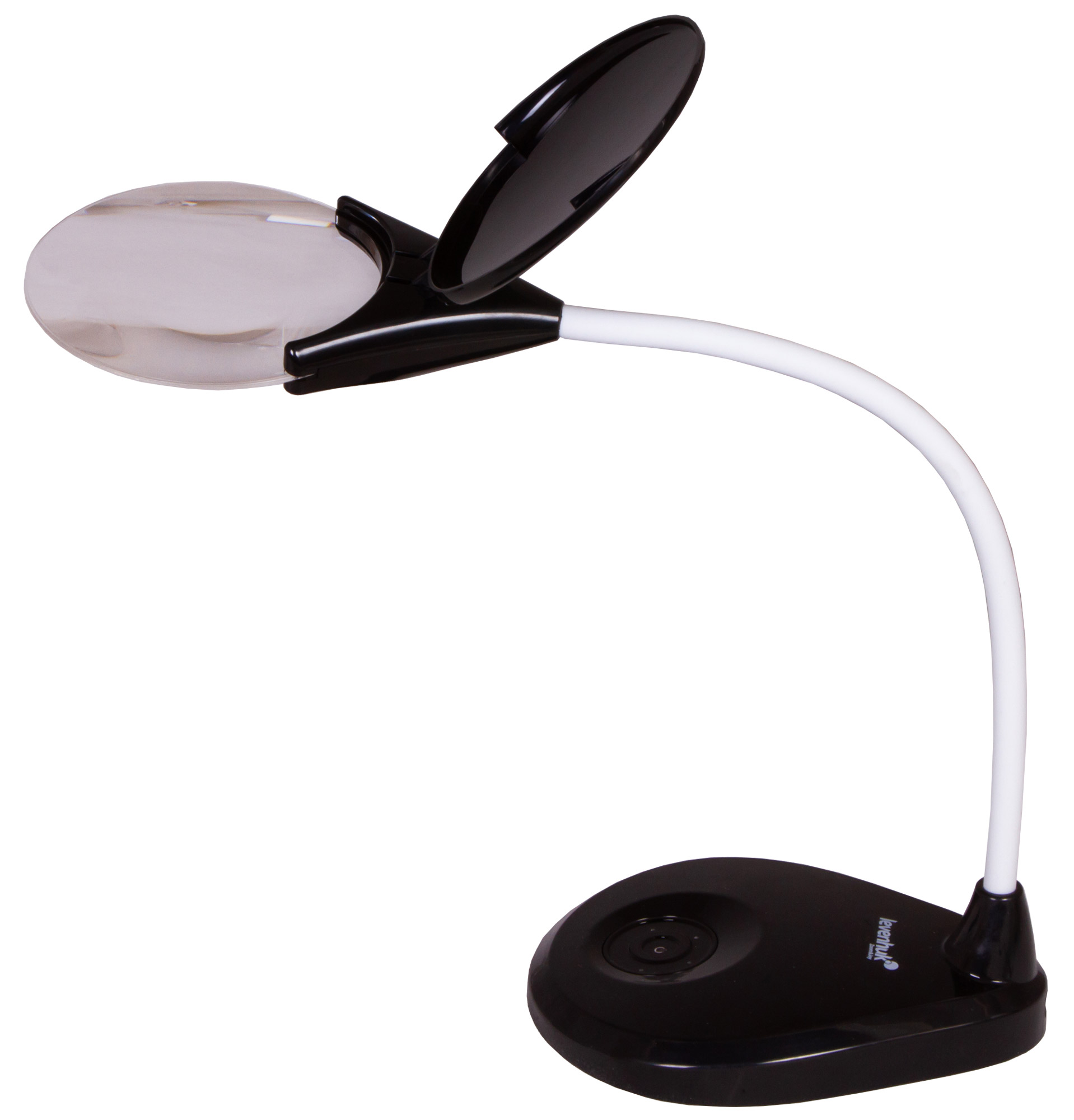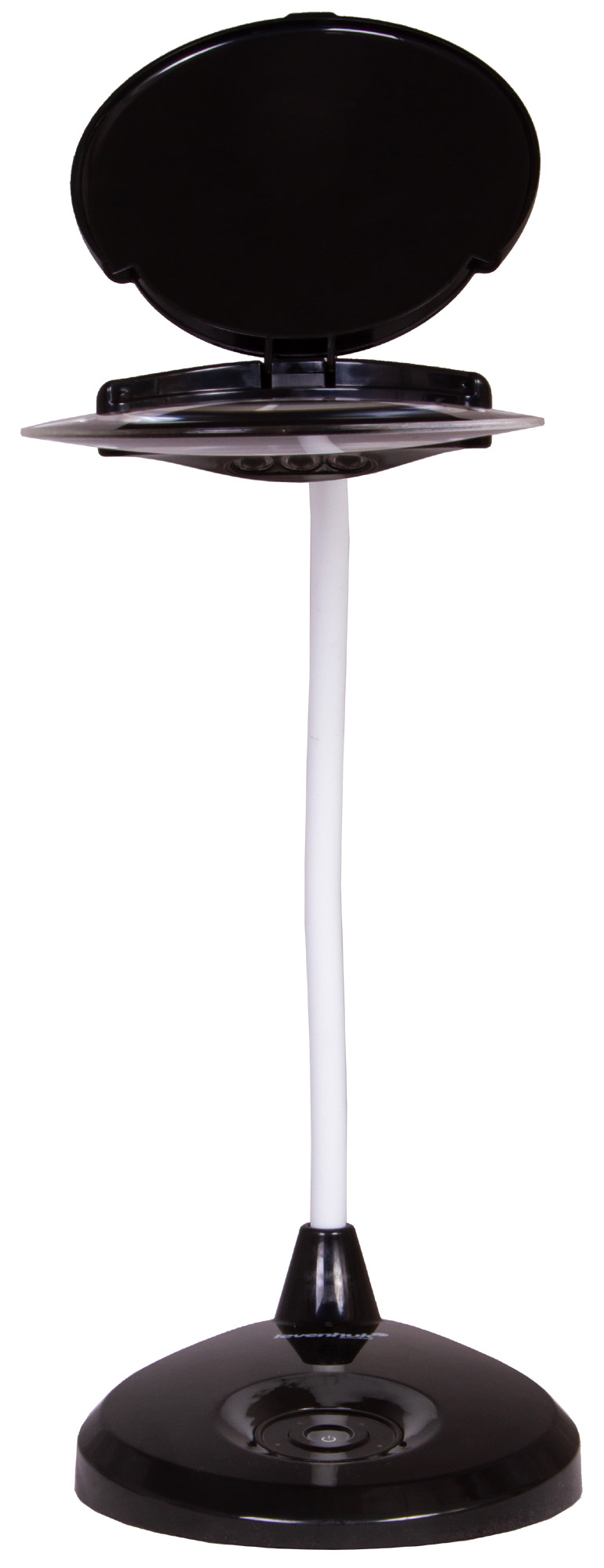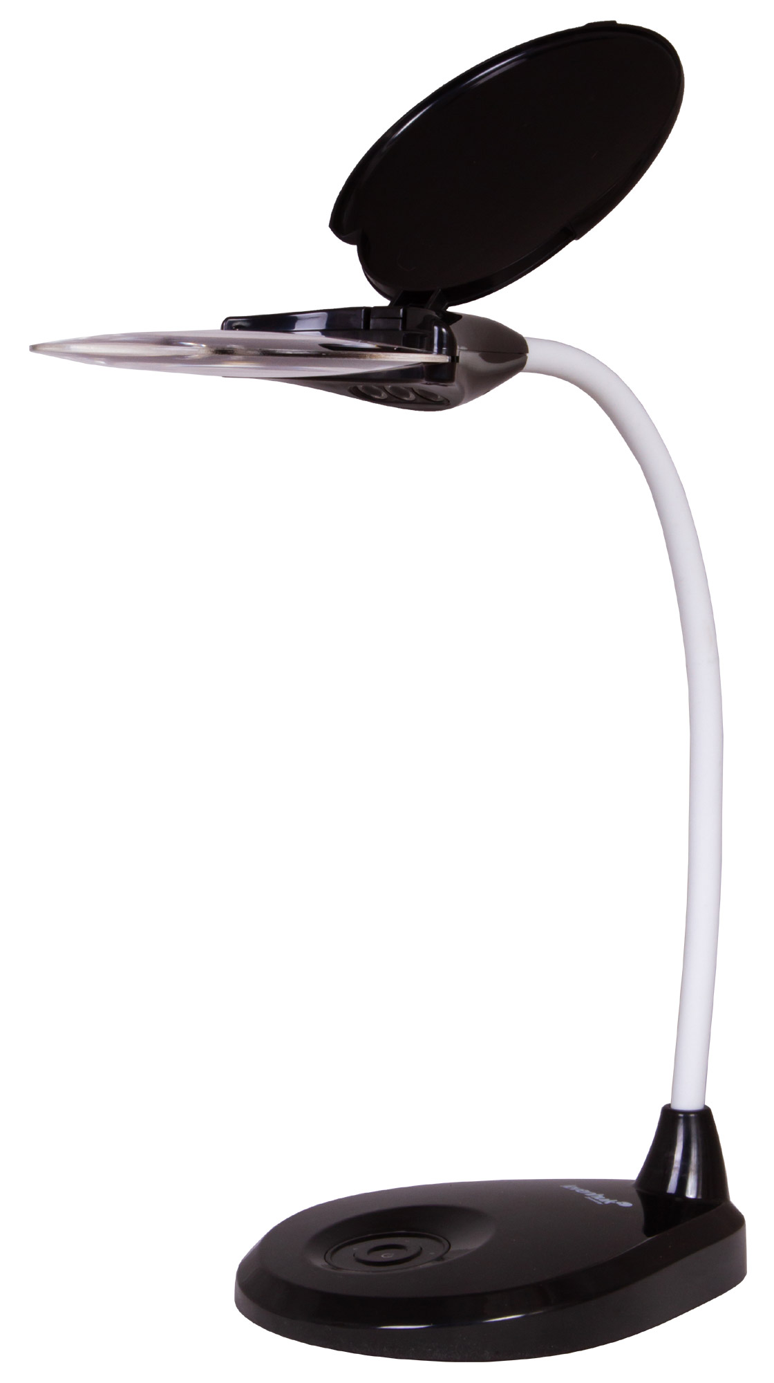 Линза закреплена на гибком штативе, который позволяет поворачивать ее под разными углами. В основании лупы находится утяжелитель, который повышает устойчивость оптического прибора. Здесь же есть и сенсорная панель для управления яркостью подсветки – всего доступно 4 режима.