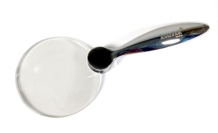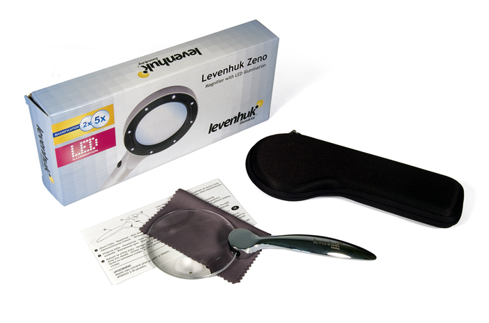 Levenhuk Zeno 100 – двухлинзовая лупа: большая линза с увеличением 2,5 крат, а малая – 5 крат. Большой диаметр основной линзы обеспечивает широкое поле зрения. Малая линза расположена у края большой линзы и позволяет рассмотреть самые мелкие детали. Линза изготовлена из качественного оптического пластика, не уступающего по качеству стеклу. Линза не имеет кругового корпуса, что уменьшает вес лупы. Ручка изготовлена из металла с хромированным покрытием.
