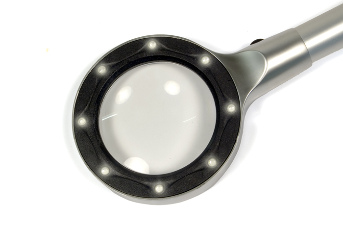 Модель оборудована встроенной подсветкой из 8 светодиодов, которые размещены в корпусе лупы по кругу, что обеспечивает равномерное освещение всей рабочей поверхности. Белый свет светодиодов не режет глаза и приятен при долгой работе. Малое энергопотребление светодиодов позволит вам долгое время не менять батарейки.