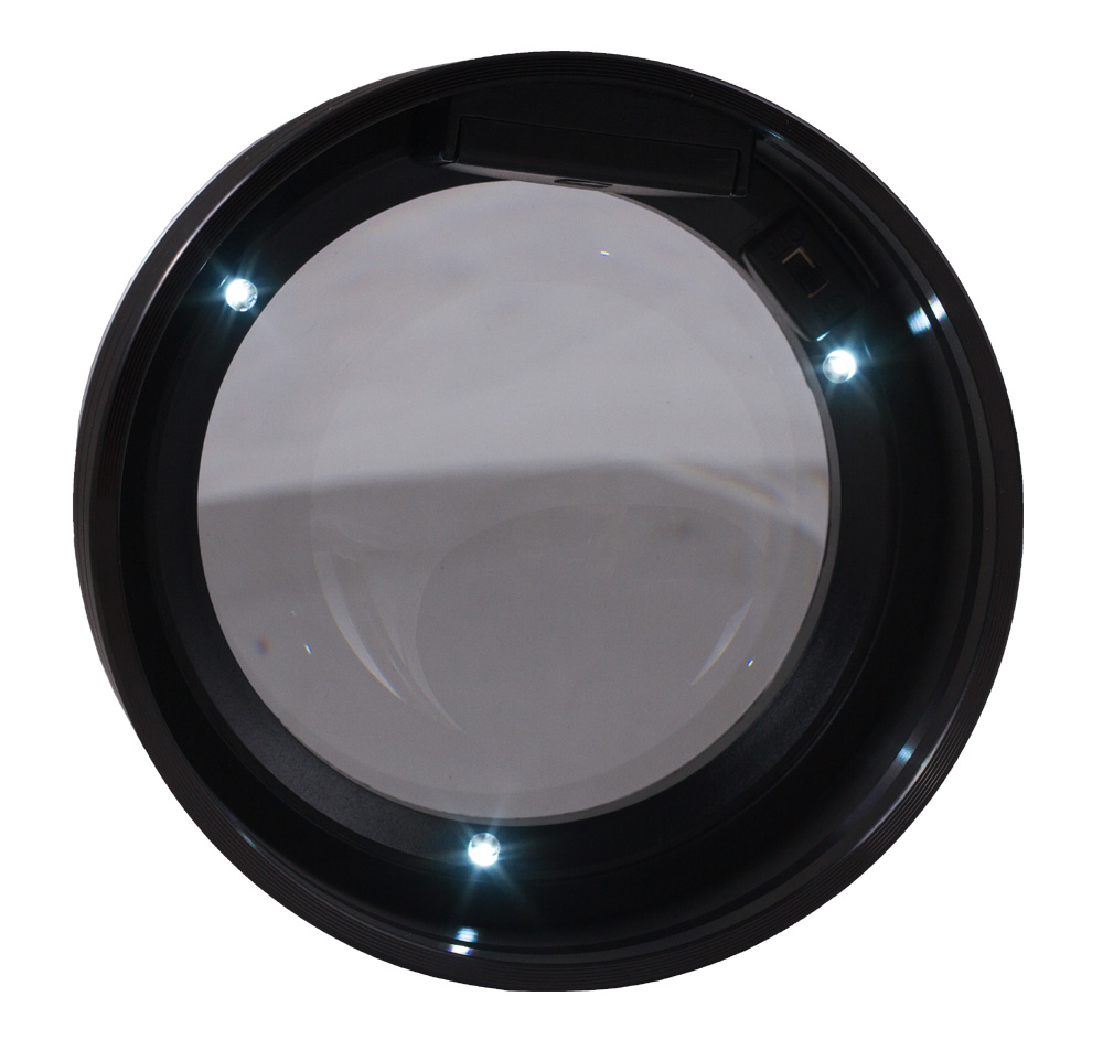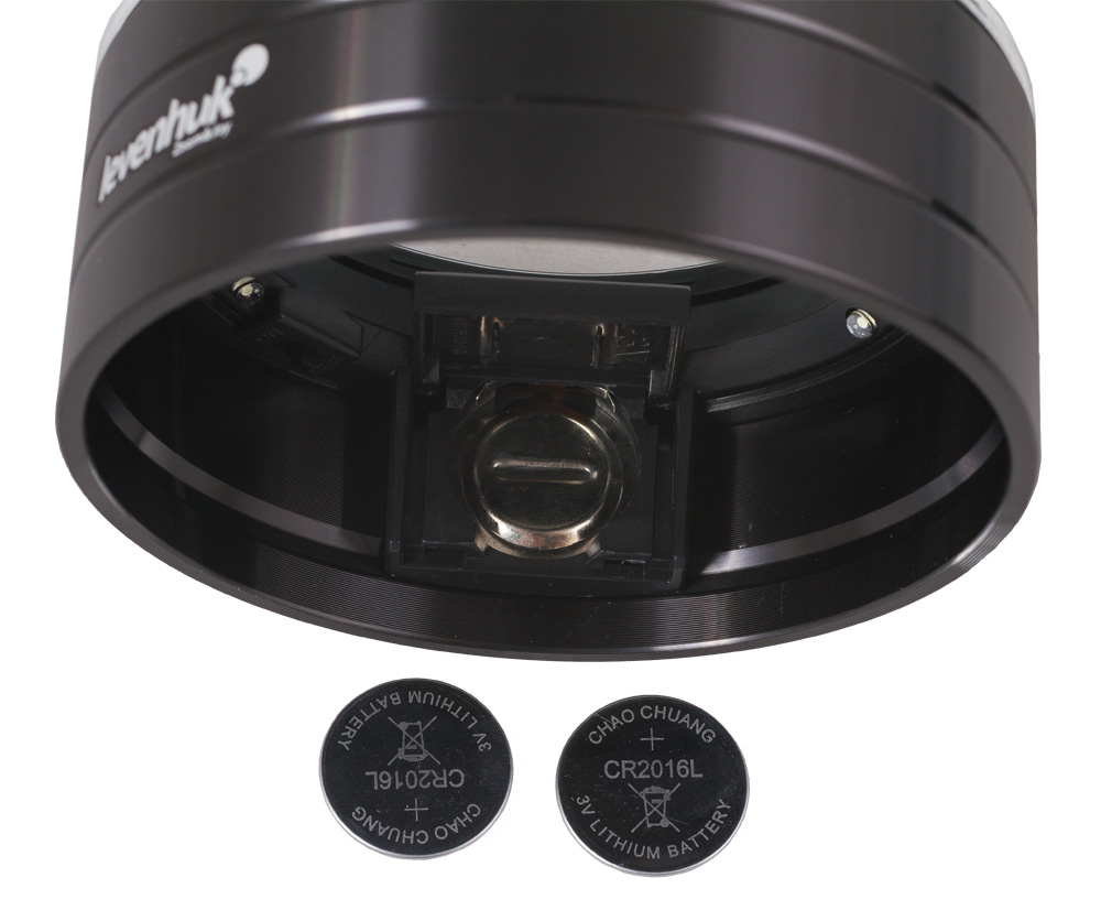 В корпусе установлены три белых светодиода. Чтобы включить подсветку, просто нажмите на оправу линзы. Светодиоды расположены на равном расстоянии друг от друга, поэтому освещение получается максимально ярким и равномерным. Для тех, кто часто забывает выключить подсветку, предусмотрена функция автоматического отключения через 10 минут.