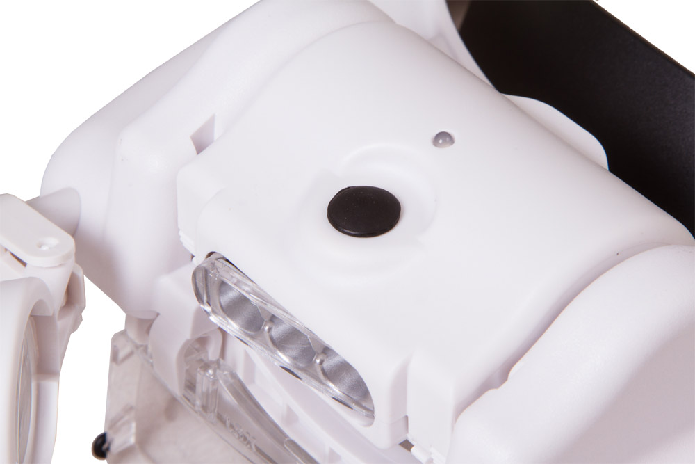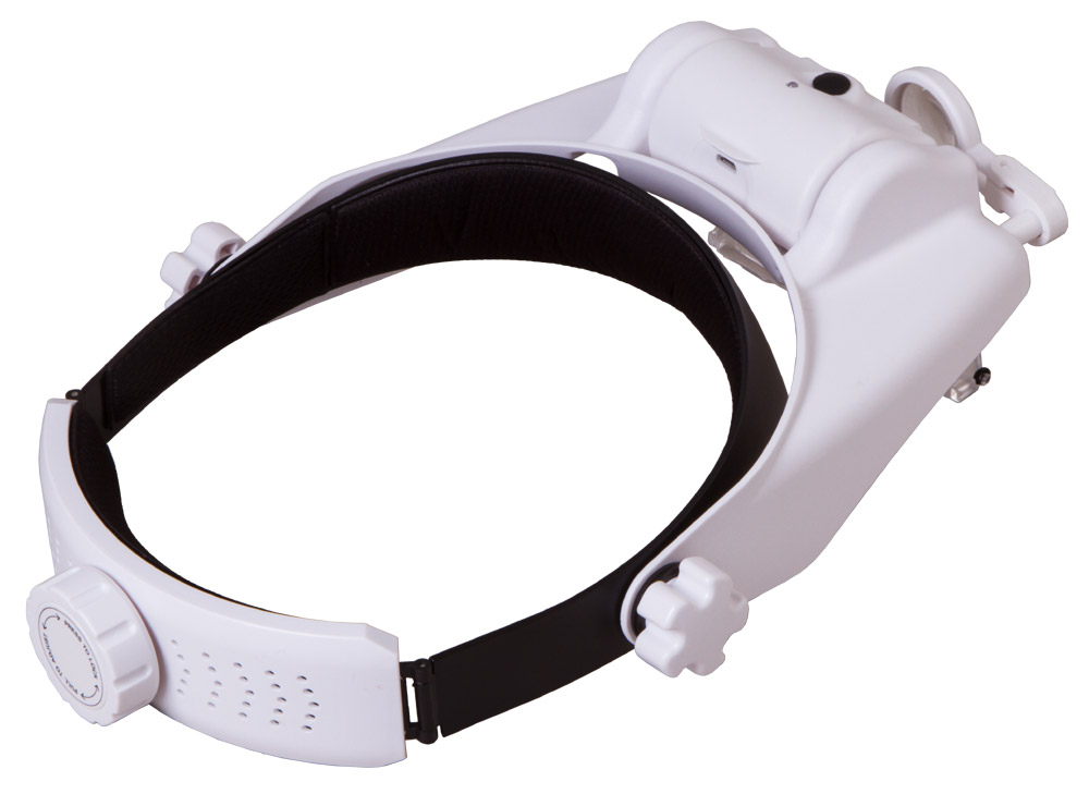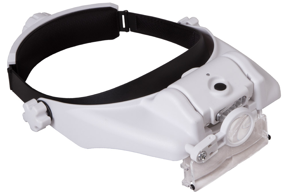 Levenhuk Zeno Vizor HR2 – налобная лупа со светодиодной подсветкой, работающей от аккумулятора. Благодаря комбинируемым линзам увеличение оптики можно отрегулировать в зависимости от задачи. Две линзы установлены прямо в корпус и рассчитаны на все поле зрения, третья предназначена только для правого глаза. При необходимости все линзы можно отвернуть в сторону, чтобы осмотреть рабочую область невооруженным глазом.