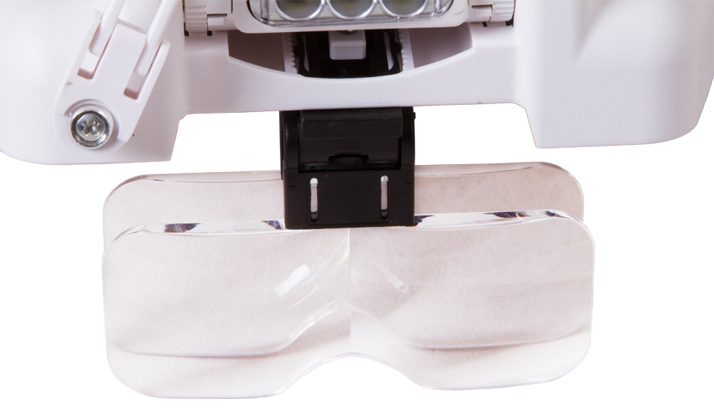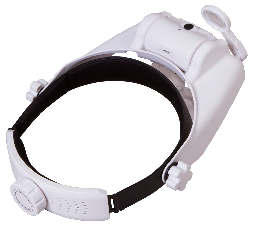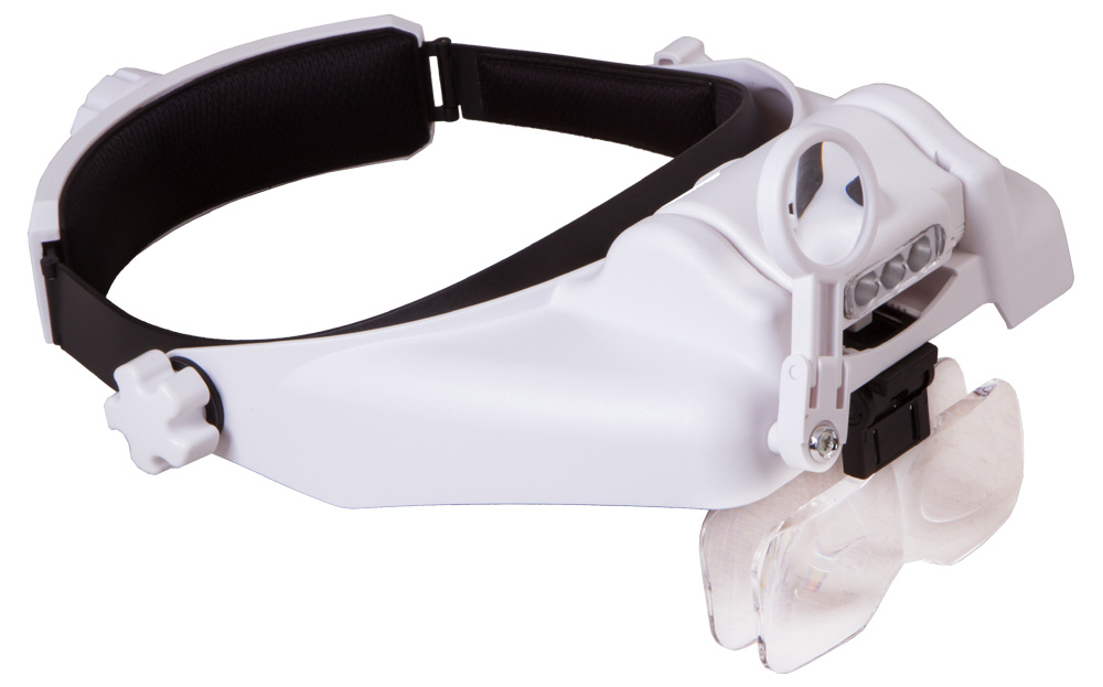 Levenhuk Zeno Vizor HR6 – налобная лупа для выполнения точных работ любого уровня сложности. На нее можно устанавливать сразу две линзы, достигая, таким образом, больших увеличений. Всего в комплект поставки включено пять линз разной кратности. Мощность оптики можно усилить и при помощи дополнительной линзы для правого глаза. Она дает еще 8 крат к увеличению. Все линзы можно отвернуть в сторону при необходимости, тогда на рабочую область получится взглянуть невооруженным глазом. А однократная линза, входящая в комплект поставки, способна превратить лупу в защитные очки для монтажных работ.