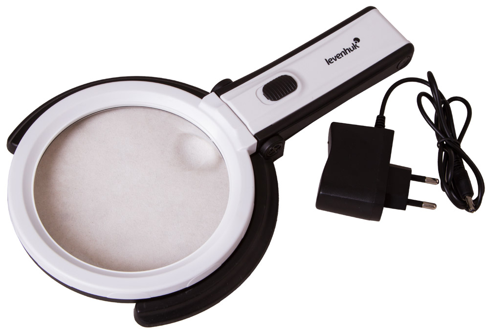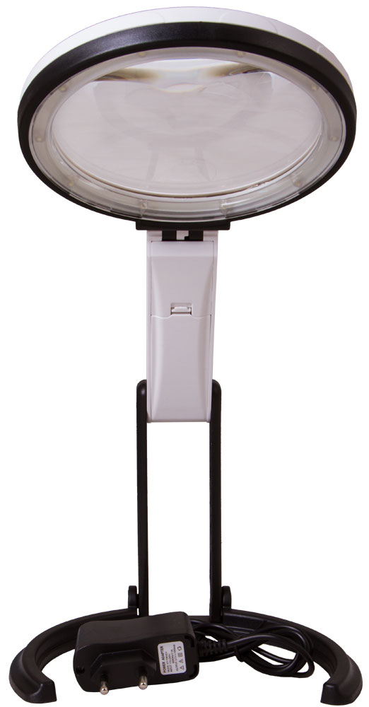 Бифокальная линза дает два увеличения – 2 и 5 крат. По ее периметру расположены 10 ярких светодиодов. Они равномерно освещают рабочее пространство, не создавая лишних теней. Работает подсветка от батареек или сети переменного тока.