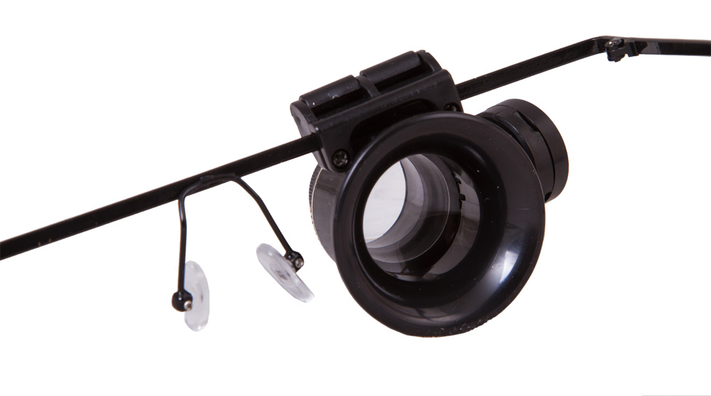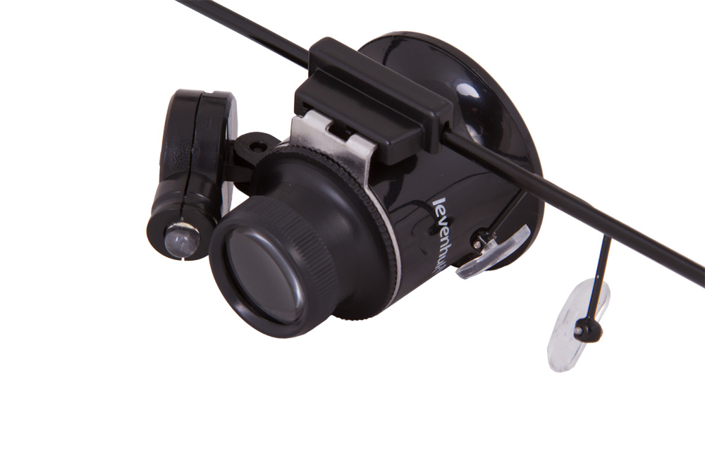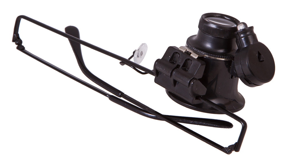 Лупа Levenhuk Zeno Vizor G1 – это лупа на очковой оправе, которая надевается как обычные очки. Линзу с 20-кратным увеличением легко передвигать по оправе влево или вправо или даже убрать в сторону, если возникнет такая необходимость. Рядом с линзой есть небольшая светодиодная подсветка. При плохом освещении ее яркости хватит, чтобы хорошо осветить всю рабочую площадь.