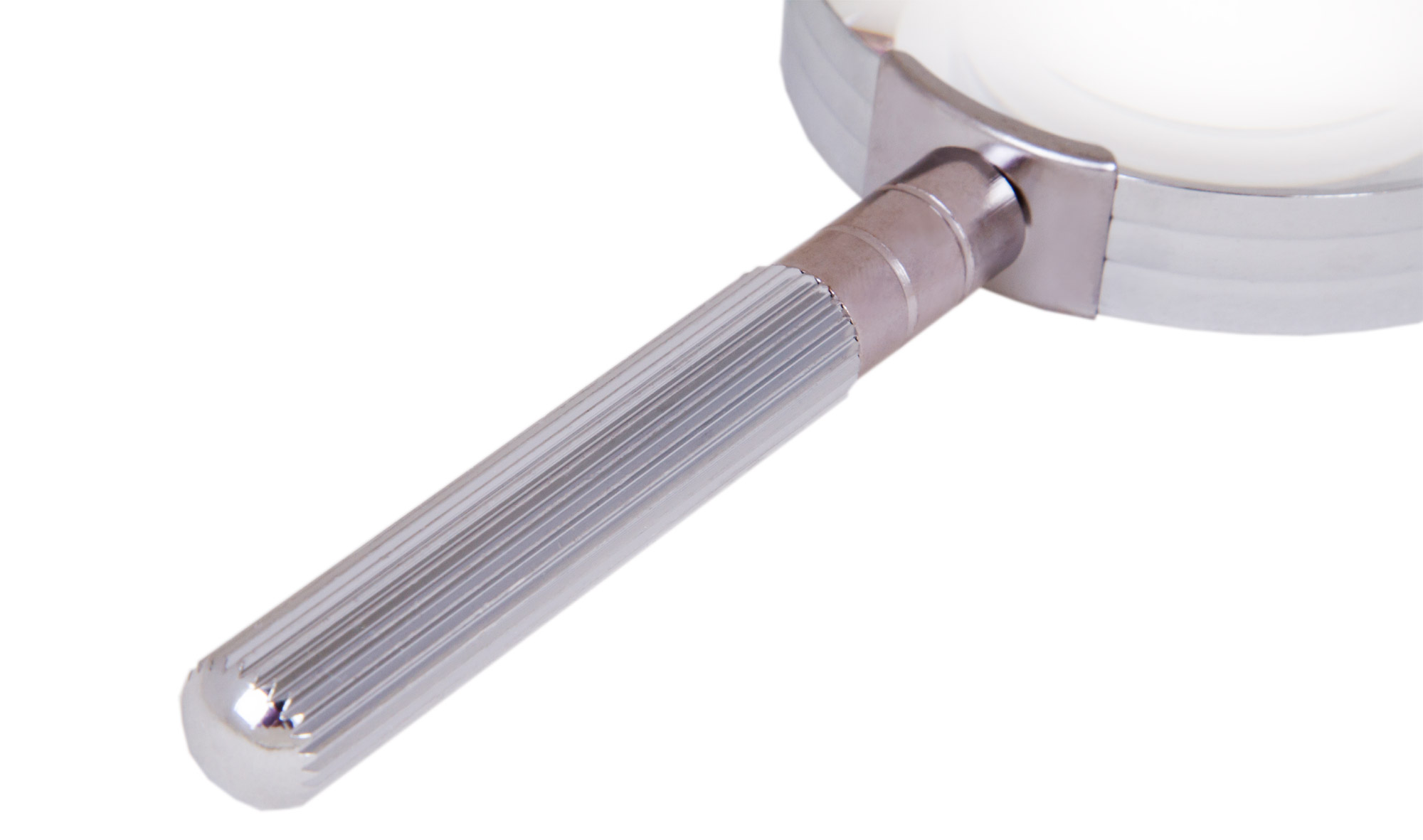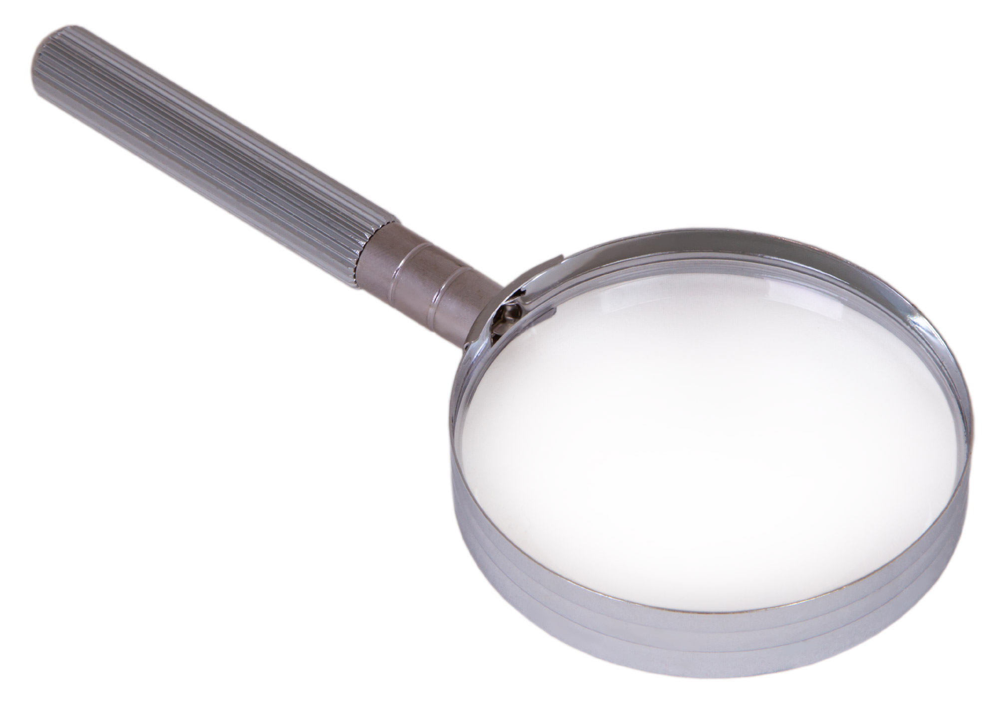 Оправа и ручка лупы сделаны из металла.