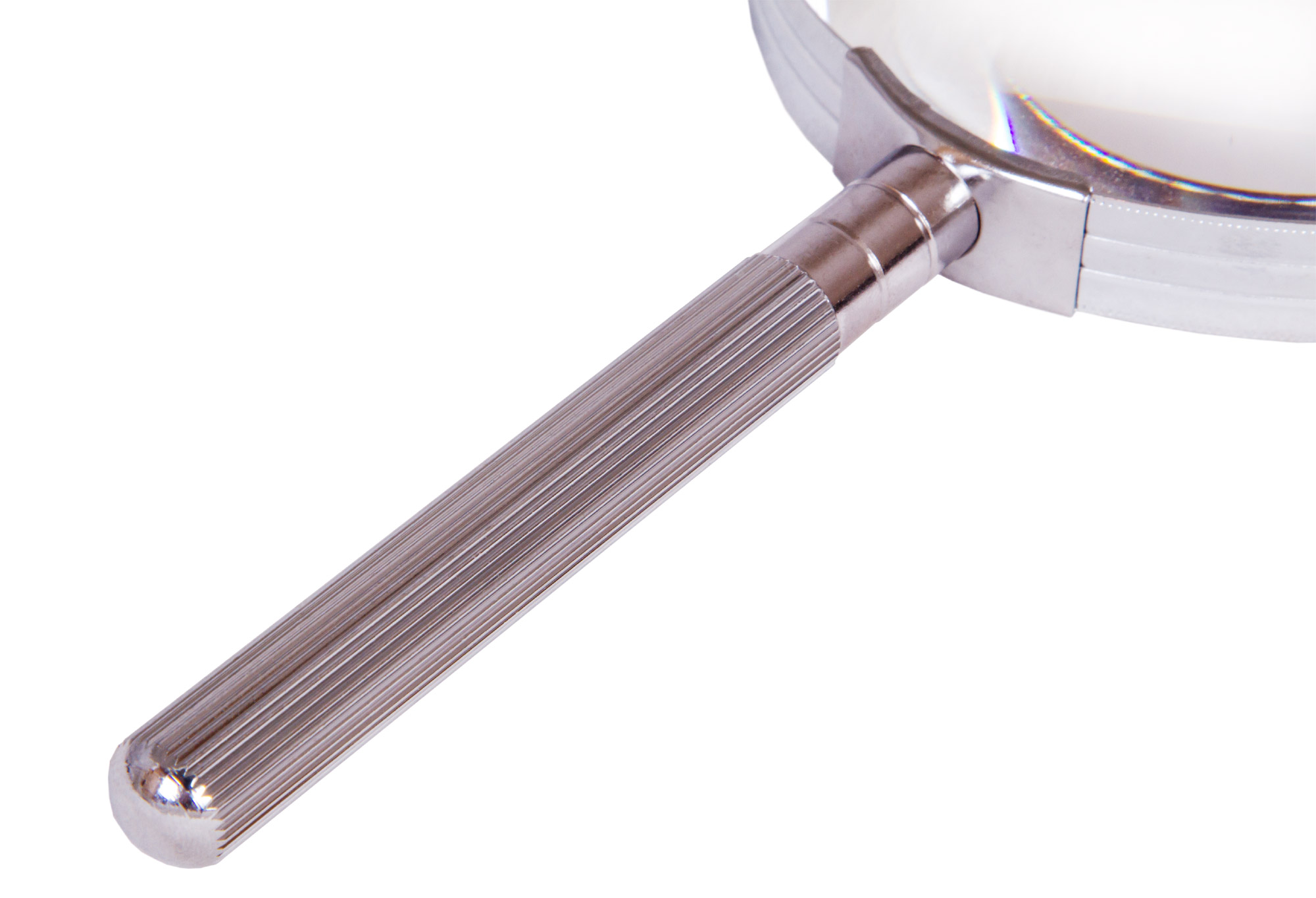 Линза сделана из пластика и помещена в металлический корпус. Ручка с ребристой поверхностью тоже сделана из металла.