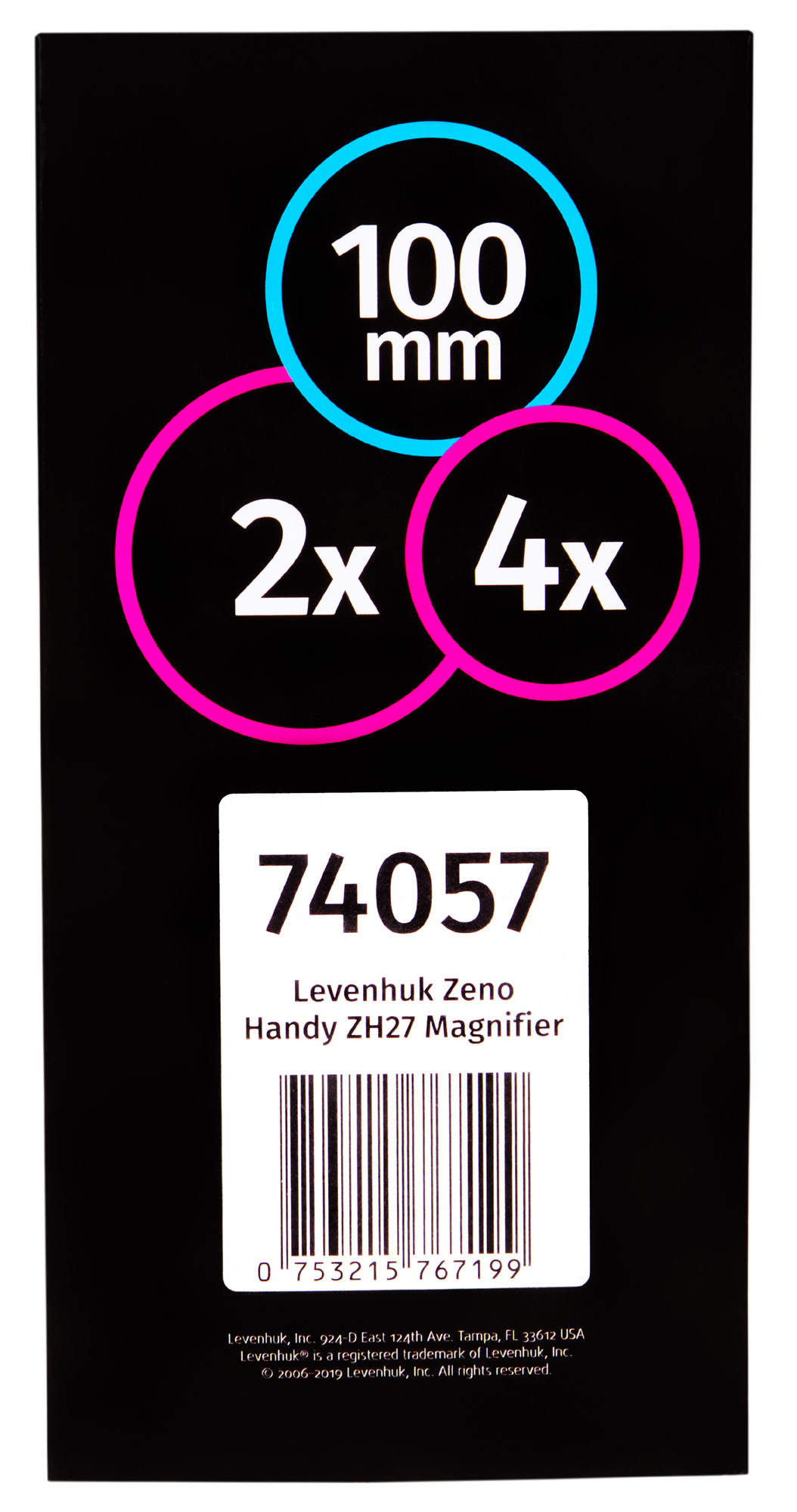 Ручная лупа Levenhuk Zeno Handy ZH27 – оптический прибор с бифокальной линзой. Ее основная особенность – два увеличения (2 и 4 крата). Меньшее доступно по всей площади основной линзы (100 мм), большее – только на области диаметром 20 мм. Лупа хорошо подходит и для рассматривания фотографий, и для чтения мелкого текста, и для изучения мелких объектов на разном увеличении.