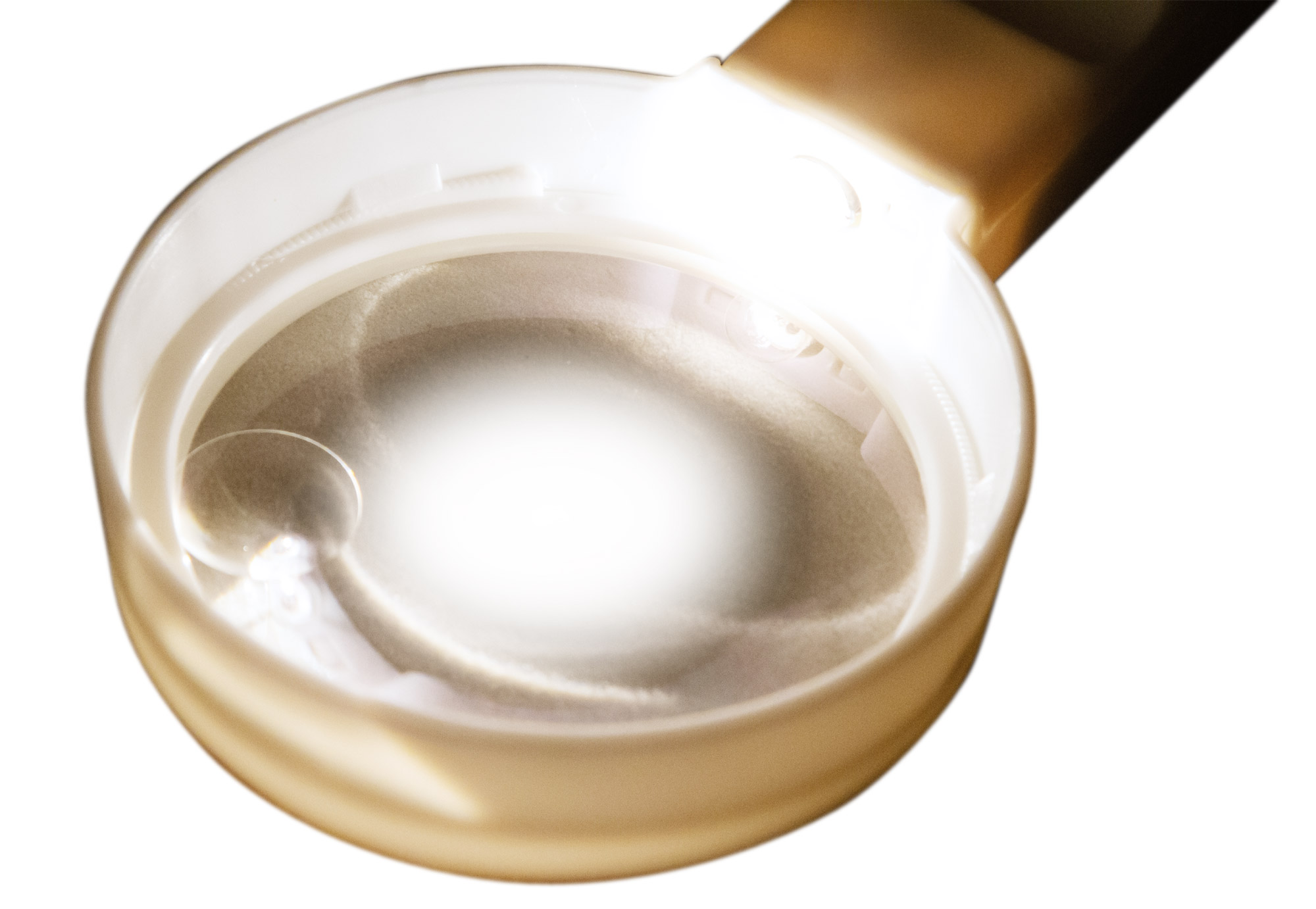 Бифокальная линза дает два увеличения – 2 и 6 крат. Максимальное доступно на малом диаметре в 21 мм. Основная линза имеет диаметр 90 мм. Линза помещена в пластиковый корпус, ручка тоже сделана из пластика.