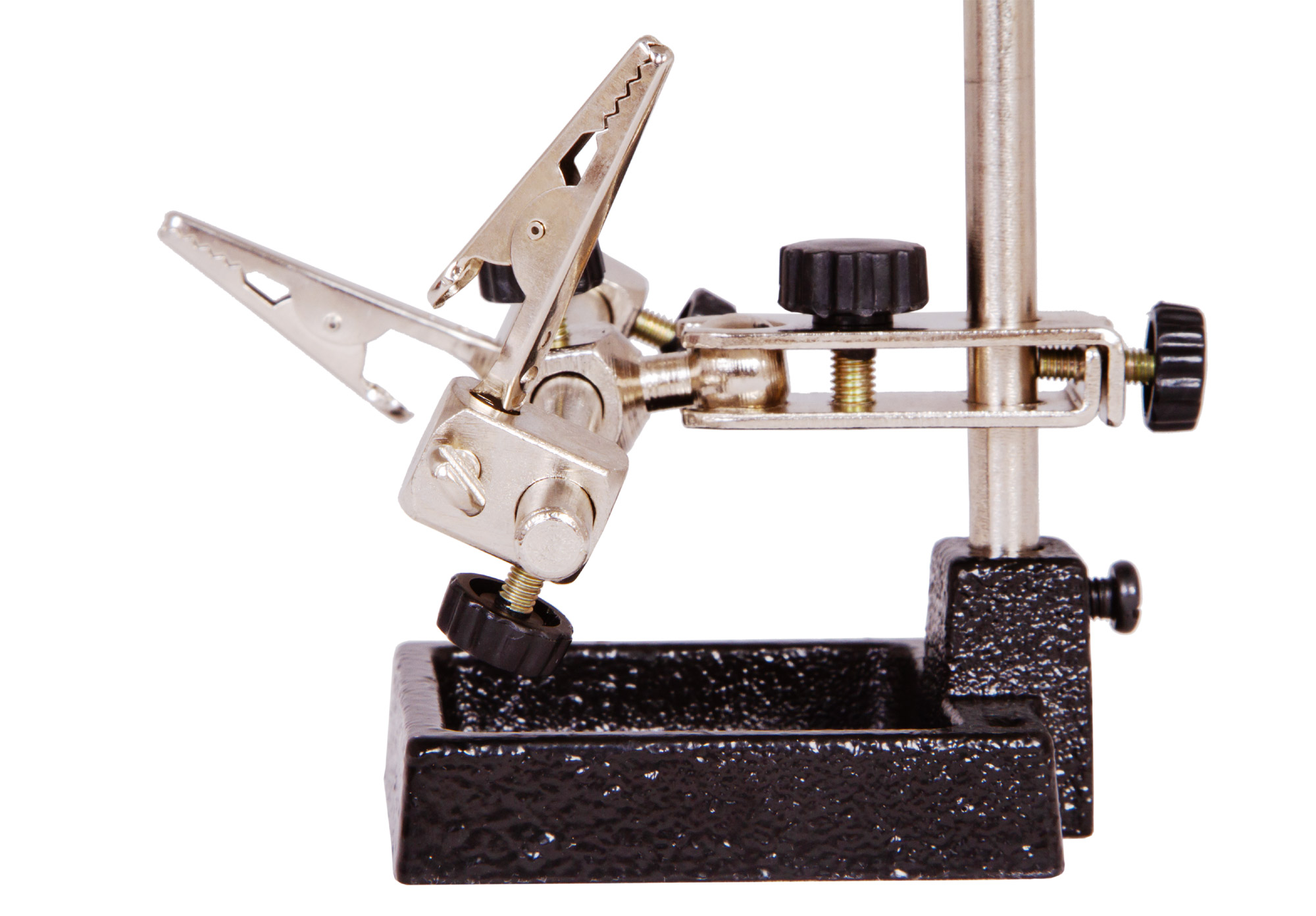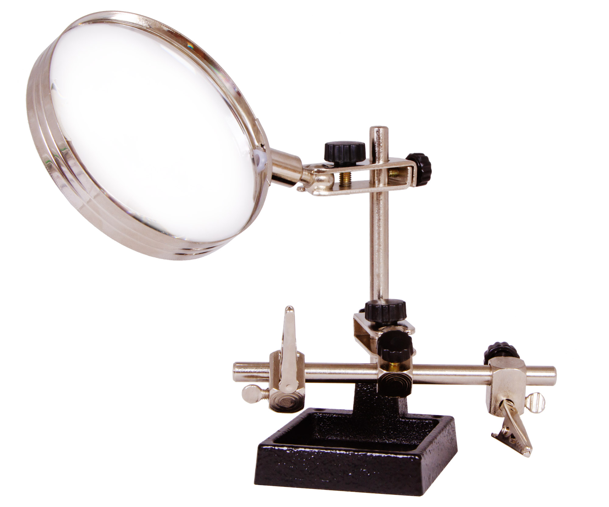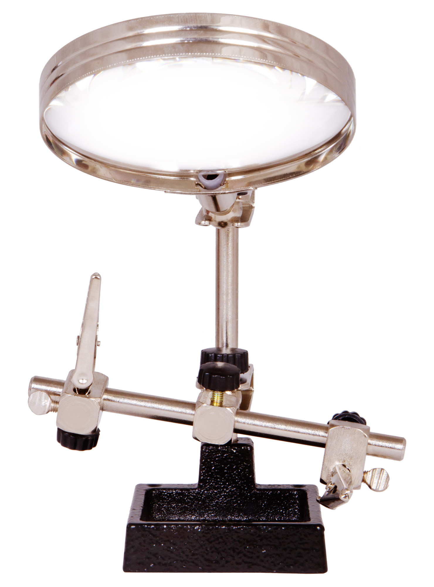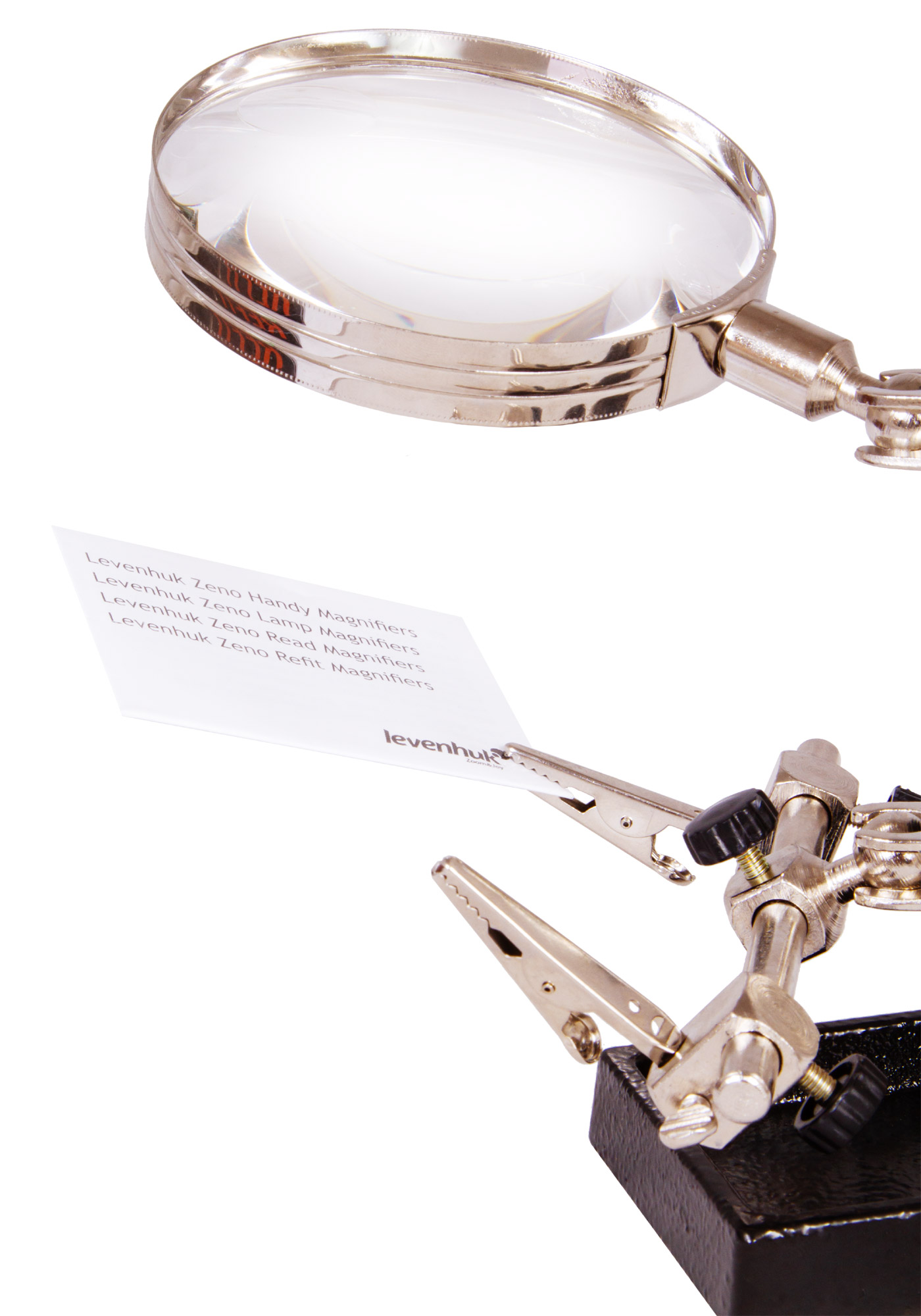 Лупа Levenhuk Zeno Refit ZF15 – оптический прибор на вертикальном штативе. Он прекрасно подойдет для пайки, ремонта электроники и часов, ювелирных работ, покраски деталей масштабных моделей. Любой небольшой объект плоской формы может быть зафиксирован двумя держателями, оснащенными зажимами-прищепками. Прибор полностью освобождает руки мастера для работы. Среди преимуществ лупы – утяжеленное металлическое основание: она не перевернется, если ее случайно задеть.
