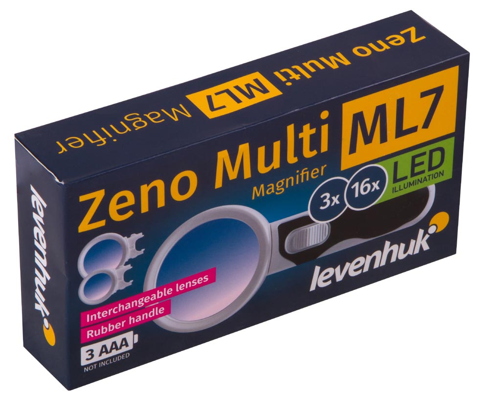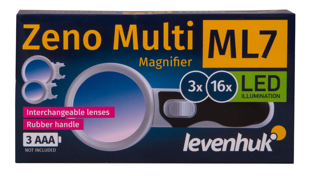 Levenhuk Zeno Multi ML7 – мультилупа для чтения и рассматривания мелких объектов. Это универсальный оптический инструмент, который представляет собой эргономичную ручку и две сменные линзы-насадки. Линзы различаются диаметром и увеличением. Они легко меняются местами и надежно фиксируются на ручке.