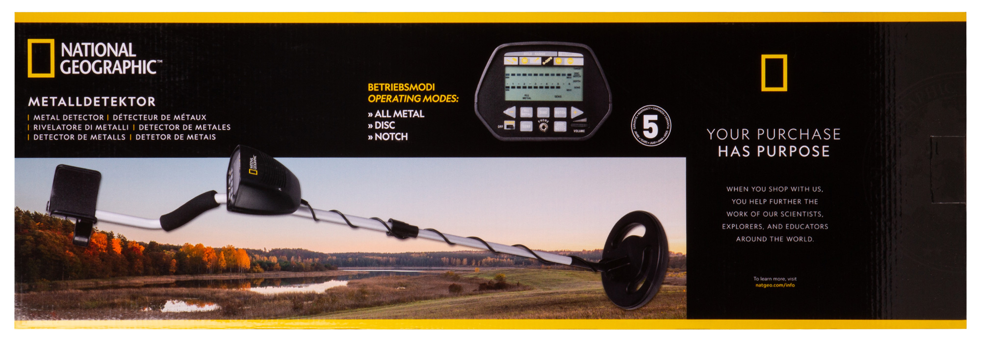 Металлоискатель Bresser National Geographic пригодится любому начинающему кладоискателю. Он удобен тем, что можно выбирать тип металла для поиска, а также настраивать чувствительность. Прибор уверенно обнаруживает мелкие монеты на глубине до 20 см, а крупные металлические объекты может найти и на более глубоком уровне залегания.