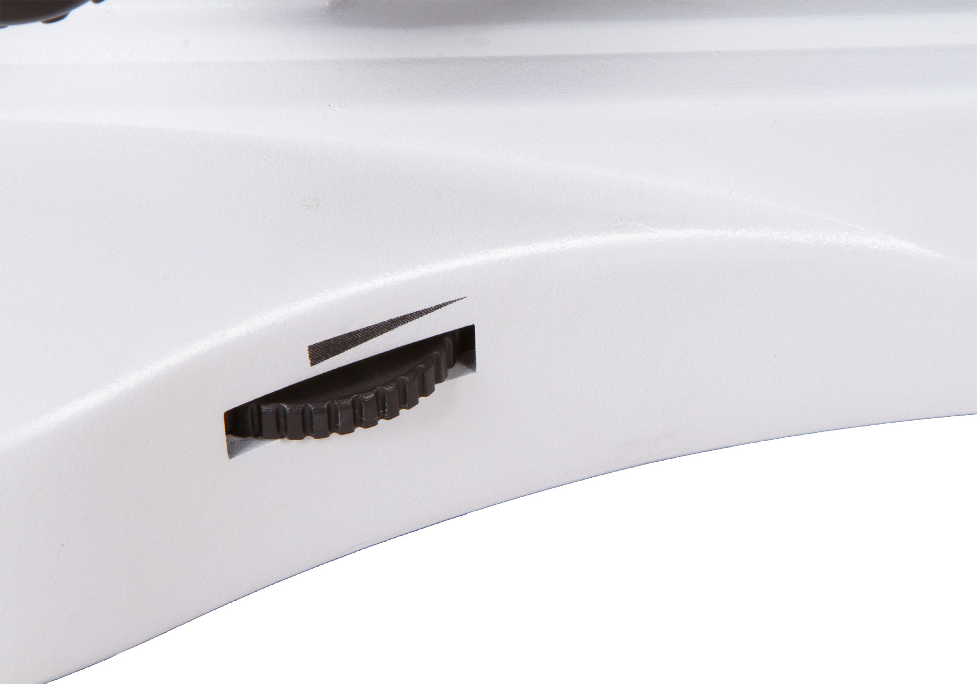 Система освещения расположена внизу. Она состоит из яркого светодиода (5 Вт) и конденсора Аббе с ирисовой диафрагмой и держателем фильтра. Яркость подсветки можно регулировать. Для ее работы требуется подключение к сети переменного тока.