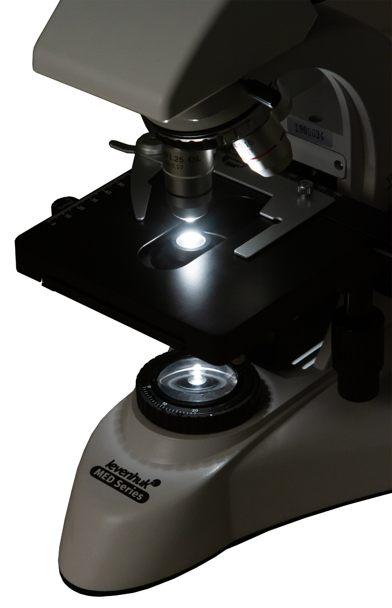 - Конденсор Аббе N.A. 1,25 с ирисовой диафрагмой и держателем фильтра